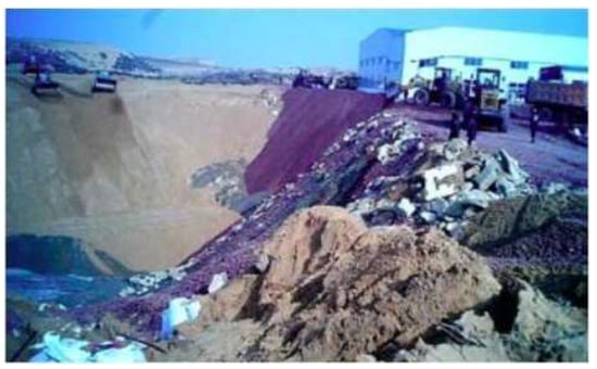 Western China is rich in coal resources. Its main stratigraphic sedimentary structures are shallowly buried coal seams (with a burial depth of less than 100 m in some mining areas), thin bedrock and an overlying thin unconsolidated layer []. These features make large-scale underground mining with full-seam mining in one pass or open-pit mining possible. However, the region has a dry and infertile climate with fragile ecological environment. Under the combined effect of intense mining activities and special engineering geological conditions, it is highly prone to sudden water and sand inrush disasters. The water and sand would inundate the workers and equipment, and often accompany surface subsidence accidents [,,,]. A notable example is the water and sand inrush caused by boreholes at the Longde Coal Mine in Shaanxi Province [], where the total surface subsidence volume was approximately 16,354.2 m3, with an average collapse flow rate of 3270.8 m3/h (see Figure 1). Coal seam roof collapse accidents and surface subsidence caused by coal seam disturbance exacerbate the imbalance of the regional water and soil environment, severely hindering the development of regional coal resources and the sustainable development of the ecological environment [,,].