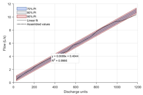 Since water consumption is based on several types of appliances, a total value f was determined based on the total n of each building, as shown in Table 2. Considering the correspondence between n and f for each building, the values of f were determined for each Qmp value, generating Figure 5b. It is suggested in [] to average the values of the expense plots according to the discharge units considering the similarity of use in buildings. See result in Figure 6.