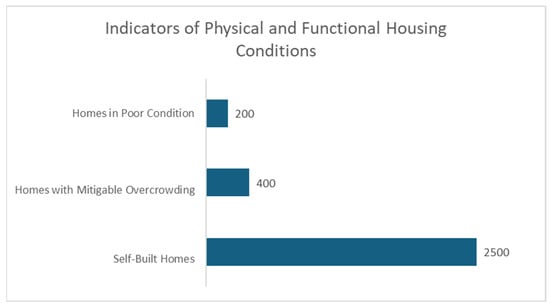 Finally, four indicators related to the physical and functional conditions of housing were analyzed (Figure 4). These indicators facilitate interactions among residents, both with their families and neighbors, promote privacy, and contribute to preventing or exacerbating physical and mental health problems among the inhabitants.
