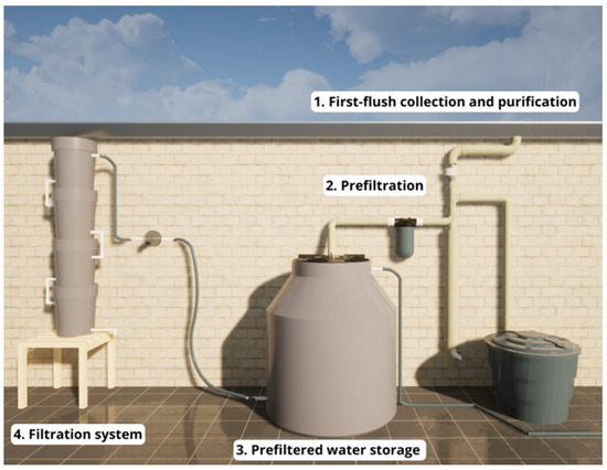 - Definition of the technical requirements for the rainwater harvesting and treatment system, in accordance with the situational framework of the community. To achieve this, treatment system proposals consulted in the background research and by [77] were reviewed.