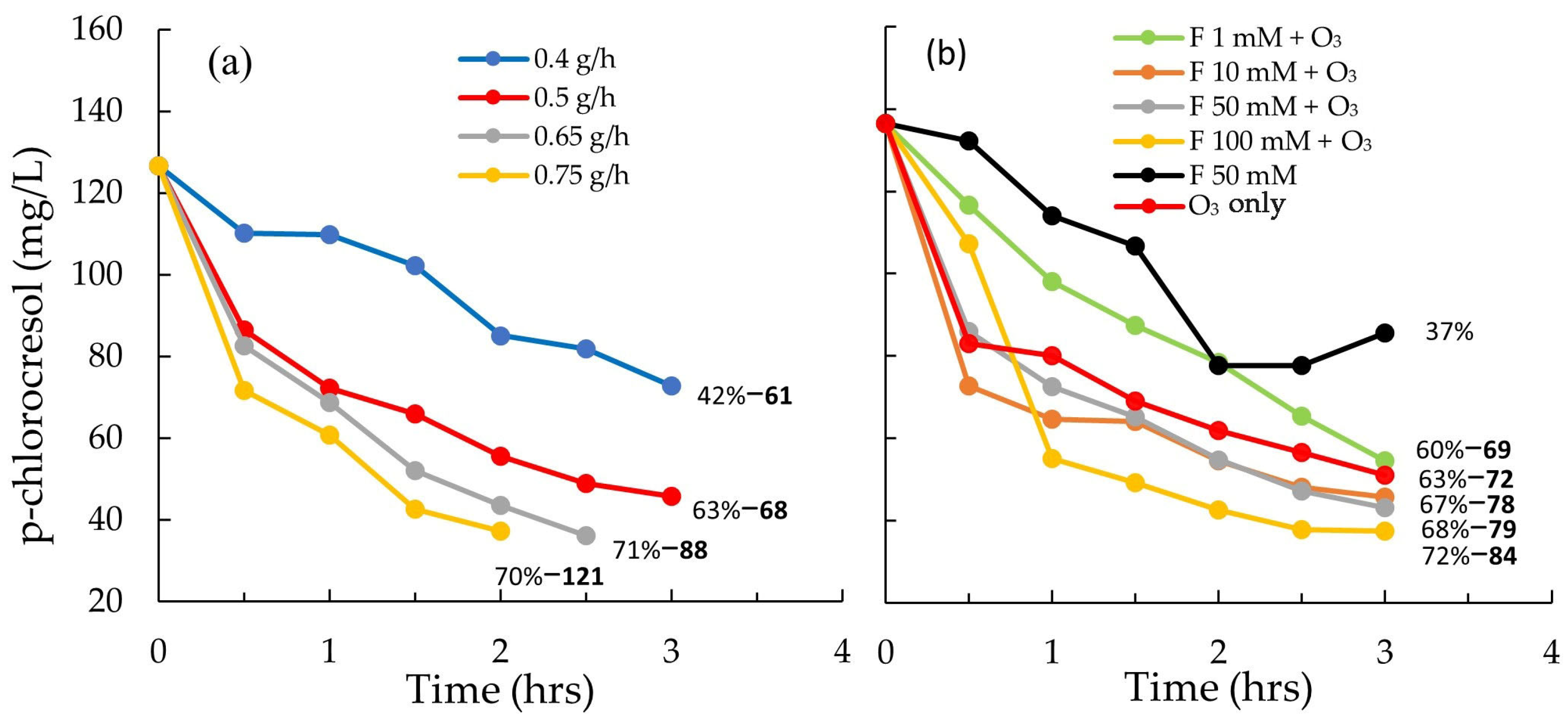 2.1.3. Combined Ozone Treatment with Fenton’s Oxidation