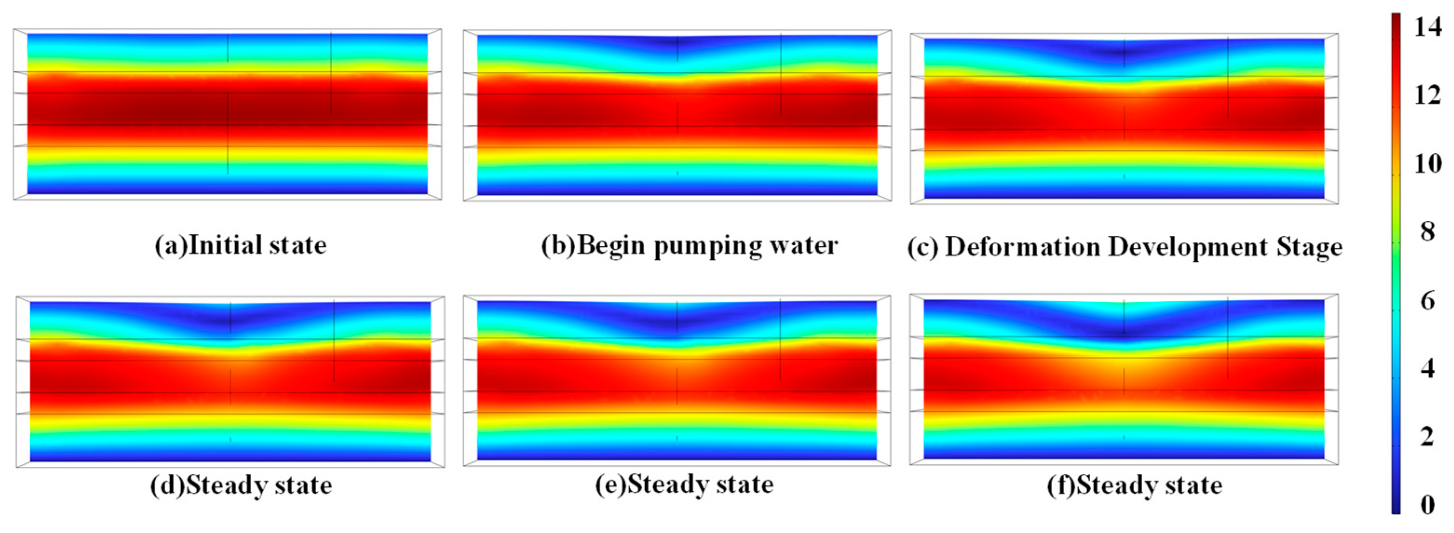 3.2. Prediction Analysis of Land Subsidence Numerical Simulation