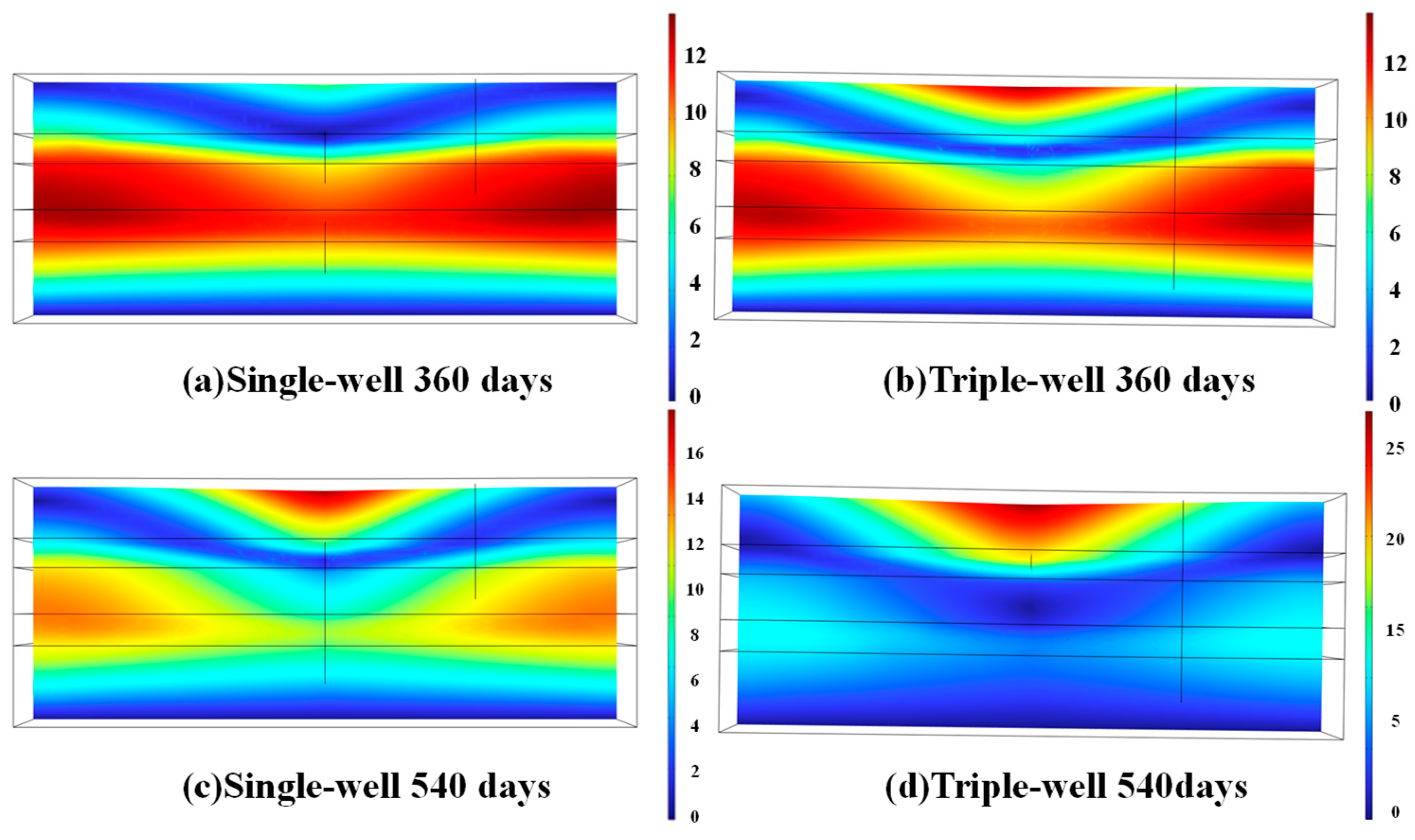 3.2.3. Impact of Pumping Volume and Well Layout