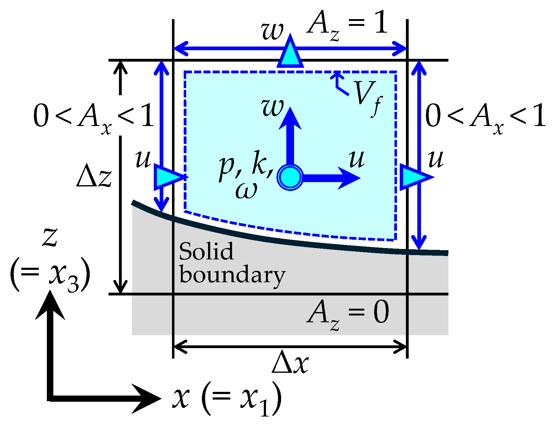 | Δx, Δy, Δz | calculation grid sizes in x, y, and z directions, respectively (m) |