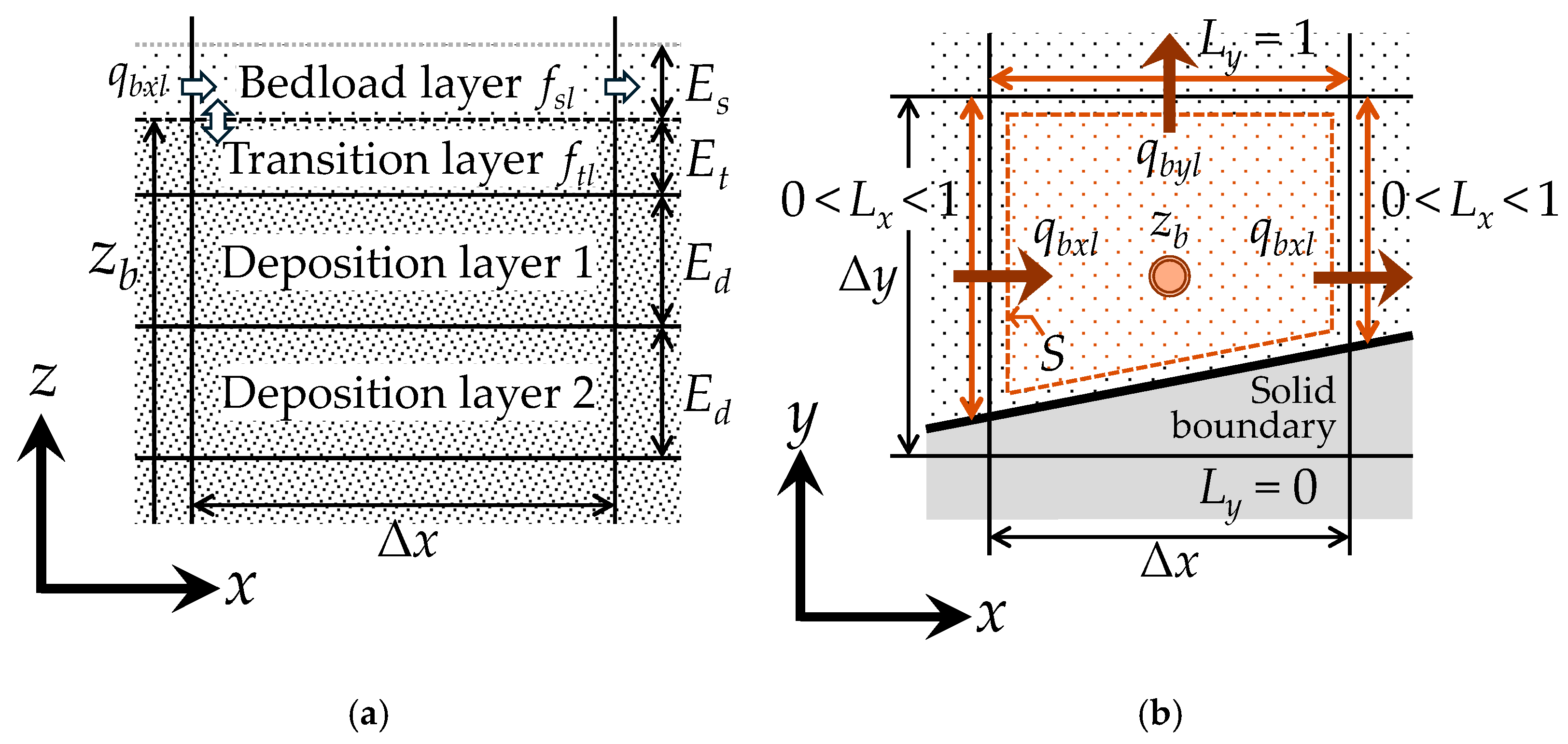 | ftlL, ftlH | fraction of l-th grain in the transition layer in the lower and upper beds, respectively (-) |