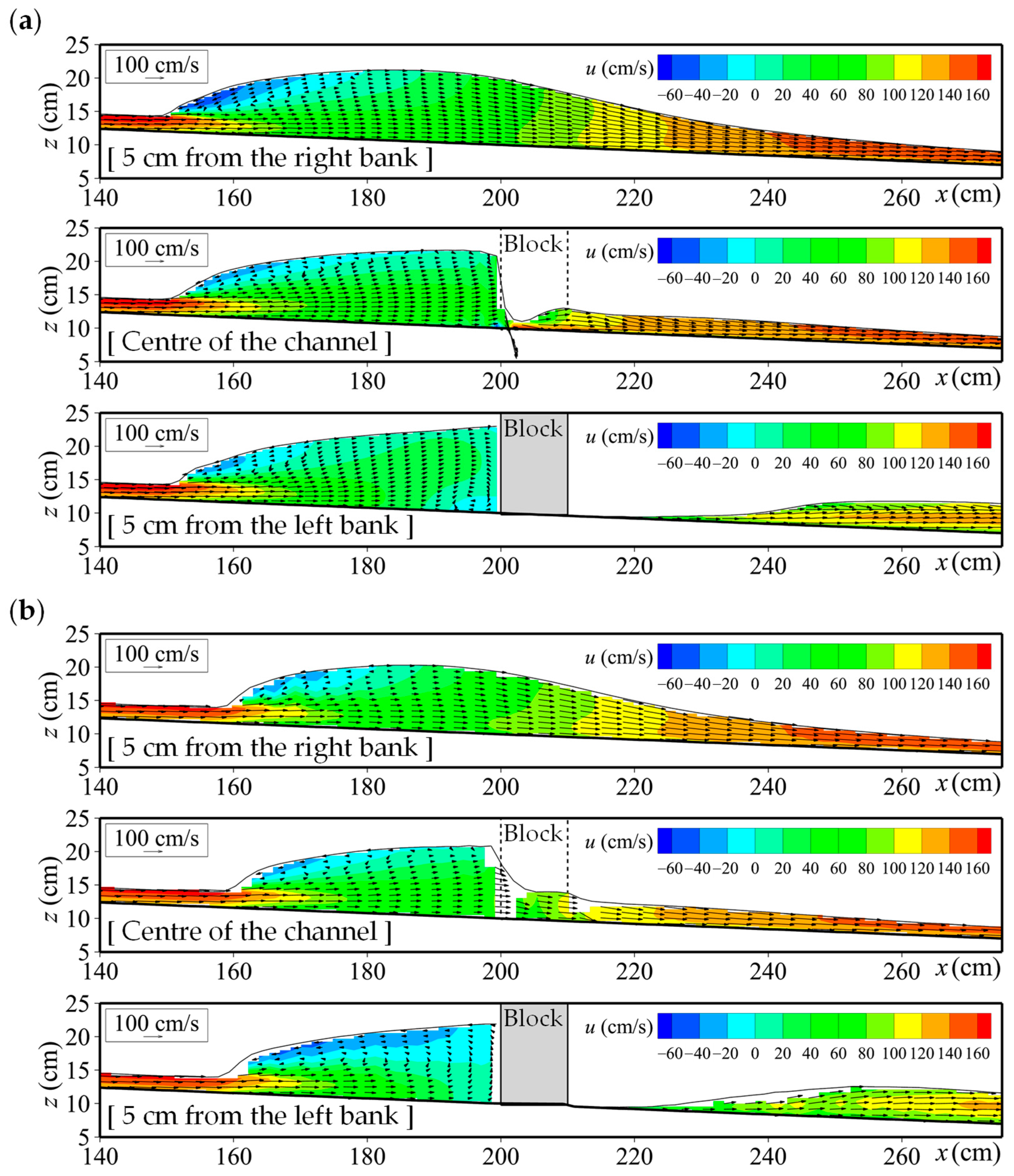 - Martínez, B.; Guerra, M.; Riviere, N.; Mignot, E.; Link, O. RANS simulation of supercritical open channel flows around obstacles. J. Hydraul. Res. 2025, 63, 1–14. [Google Scholar] [CrossRef]