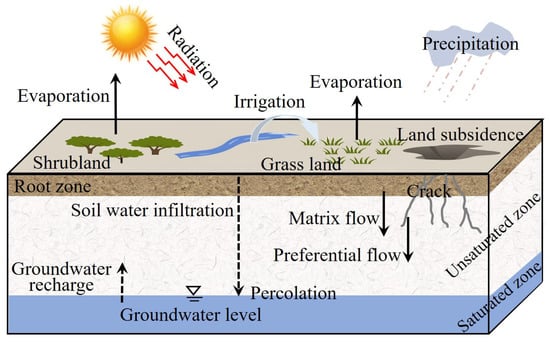 Surface subsidence caused by coal mining not only alters local geomorphology but also profoundly impacts the soil water cycle in the unsaturated (vadose) zone. The development of subsidence-induced crack structures disrupts the original hydrological equilibrium, changing both the pathways and dynamics of water migration in these areas [].