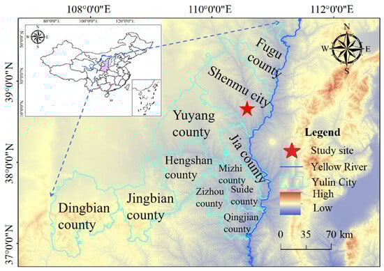 The study area is located in Shenmu City (36°57′–39°34′ N, 107°28′–111°15′ E), Yulin City, Shaanxi Province, on the northern margin of the Ordos Basin (Figure 2). It is a typical resource-based energy city and one of China’s major national coal production bases. The region lies within an ecologically fragile zone characterized by an arid to semi-arid continental monsoon climate, forming the natural background for the subsequent hydrological and ecological analyses. The superimposition of intense energy exploitation and high ecological sensitivity makes this region an ideal case study for examining mining-induced cracks and regional hydrological and ecological processes [,,]. The area experiences an average annual temperature of 8–9 °C and annual precipitation of 350–450 mm, approximately 75% of which occurs from June to September. In contrast, annual evaporation is extremely high (1700–1800 mm). Long-term meteorological records indicate significant interannual variability and an increasing frequency of extreme rainfall events, although the overall annual precipitation shows a slight declining trend (Figure 3) [,]. These climatic characteristics reflect strong seasonal concentration and periodic variation in rainfall, directly influencing crack formation and hydrological processes in the region. The main rivers in the study area include the Yellow River, Kuye River, and Tuwei River, which exhibit marked seasonal flow variations and high sediment loads. However, long-term intensive coal mining has caused a continuous decline in the groundwater table, exceeding 60 m in some mined-out areas, thereby weakening the hydraulic connection between the unsaturated and saturated zones []. The formation and expansion of mining-induced cracks in the vadose zone provide preferential flow paths for rainfall infiltration, altering the vertical soil-moisture distribution and the regional infiltration regime.