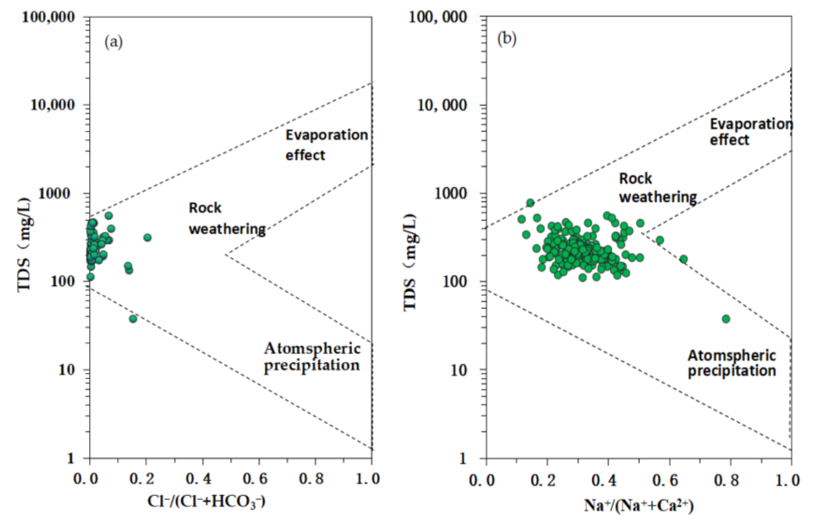 - Gibbs, R.J. Mechanisms controlling world water chemistry. Science 1970, 170, 1088–1090. [Google Scholar] [CrossRef] [PubMed]