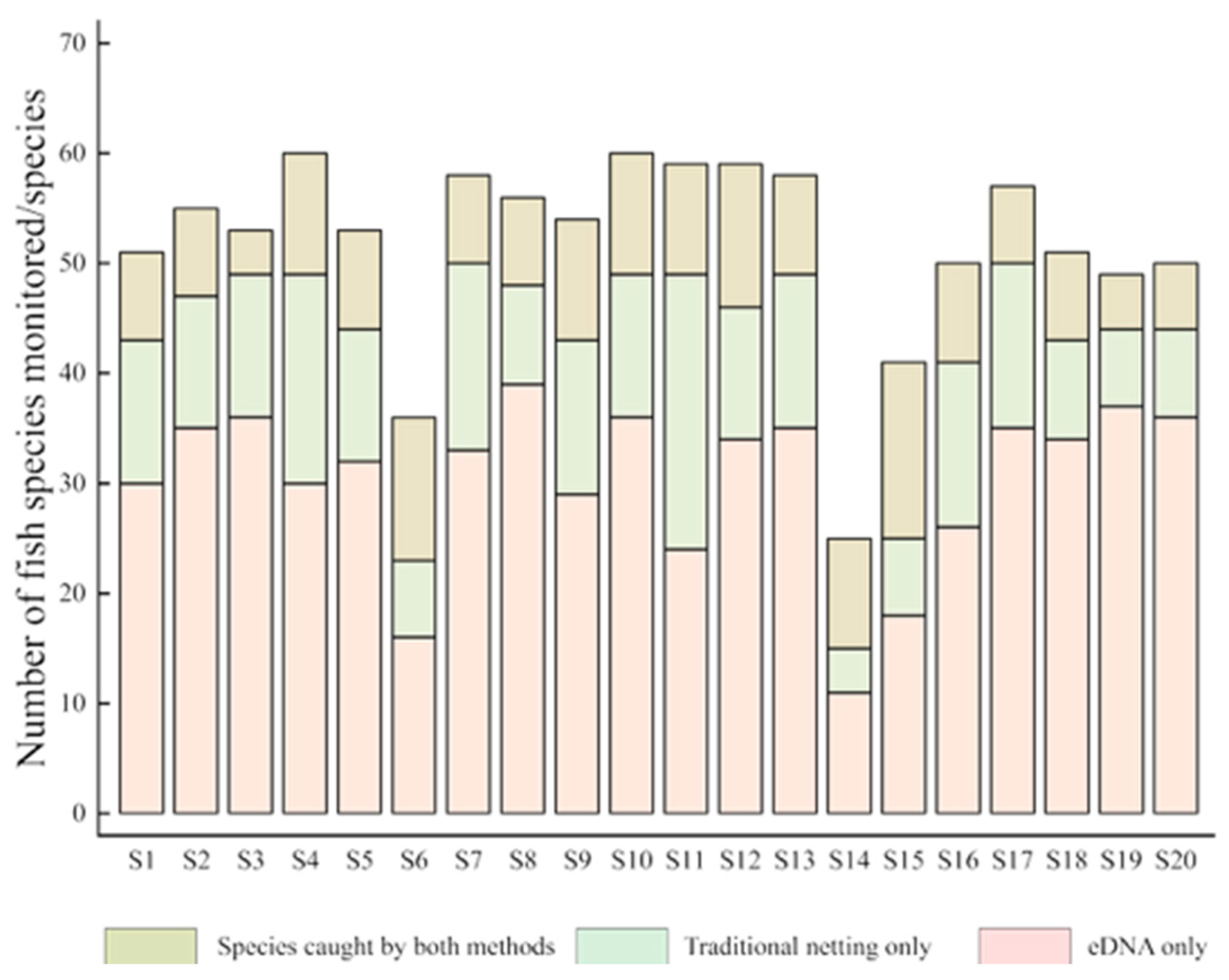 3.1. Comparison of Traditional Fishing Gear and eDNA Monitoring Results