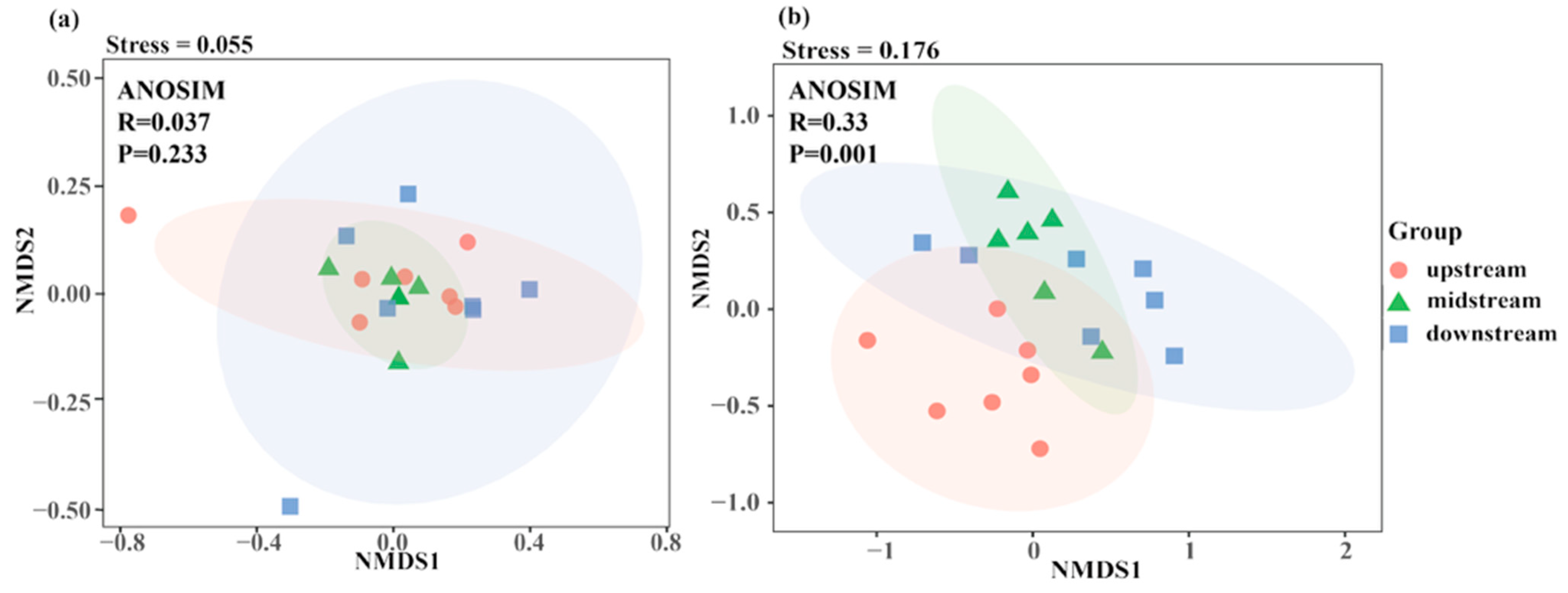 - Somerfield, P.J.; Clarke, K.R.; Gorley, R.N. Analysis of similarities (ANOSIM) for 2-way layouts using a generalised ANOSIM statistic, with comparative notes on Permutational Multivariate Analysis of Variance (PERMANOVA). Austral Ecol. 2021, 46, 911–926. [Google Scholar] [CrossRef]