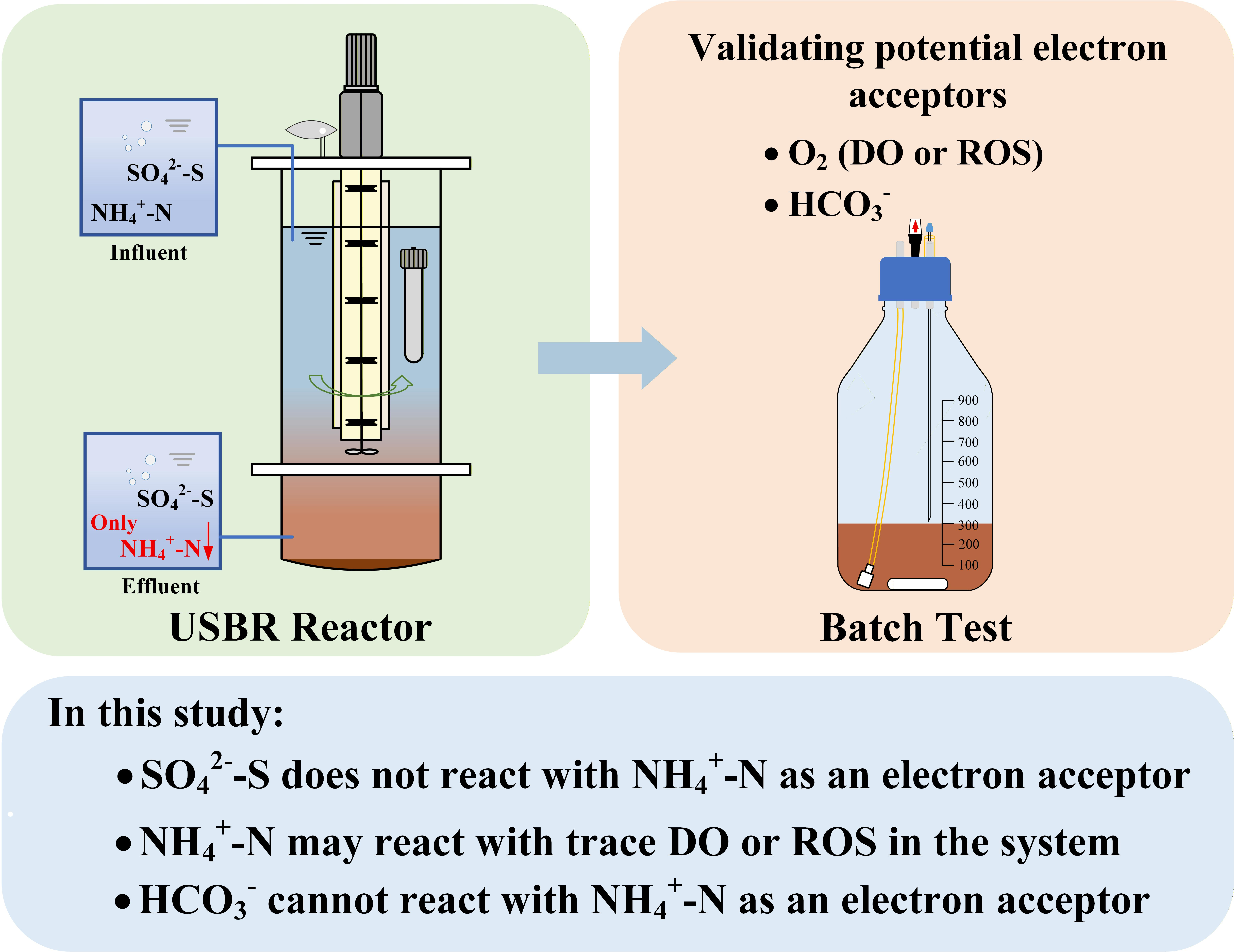 The phenomenon of selective ammonia nitrogen removal in the presence of sulfate was examined, and potential electron acceptors responsible for this process were hypothesized and analyzed. Additionally, the influence of different inoculated sludges on this process was also investigated. Consequently, batch tests were conducted to further explore these issues. Two sets of batch tests were designed using sludge from the reactor after 173 days of stable operation. Each test was performed in duplicate. Besides the necessary daily water exchange, all tests were carried out in a light-proof environment.