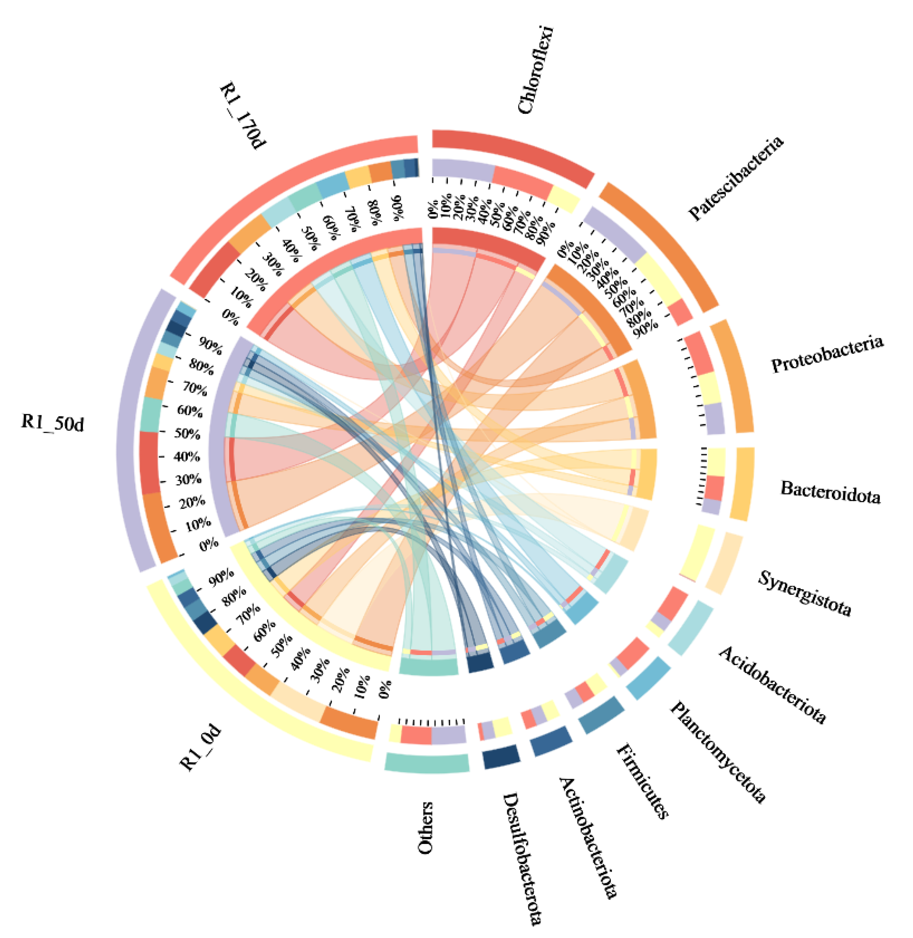 Figure 13. Phylum-level chord diagram of sludge samples from different reactor stages.