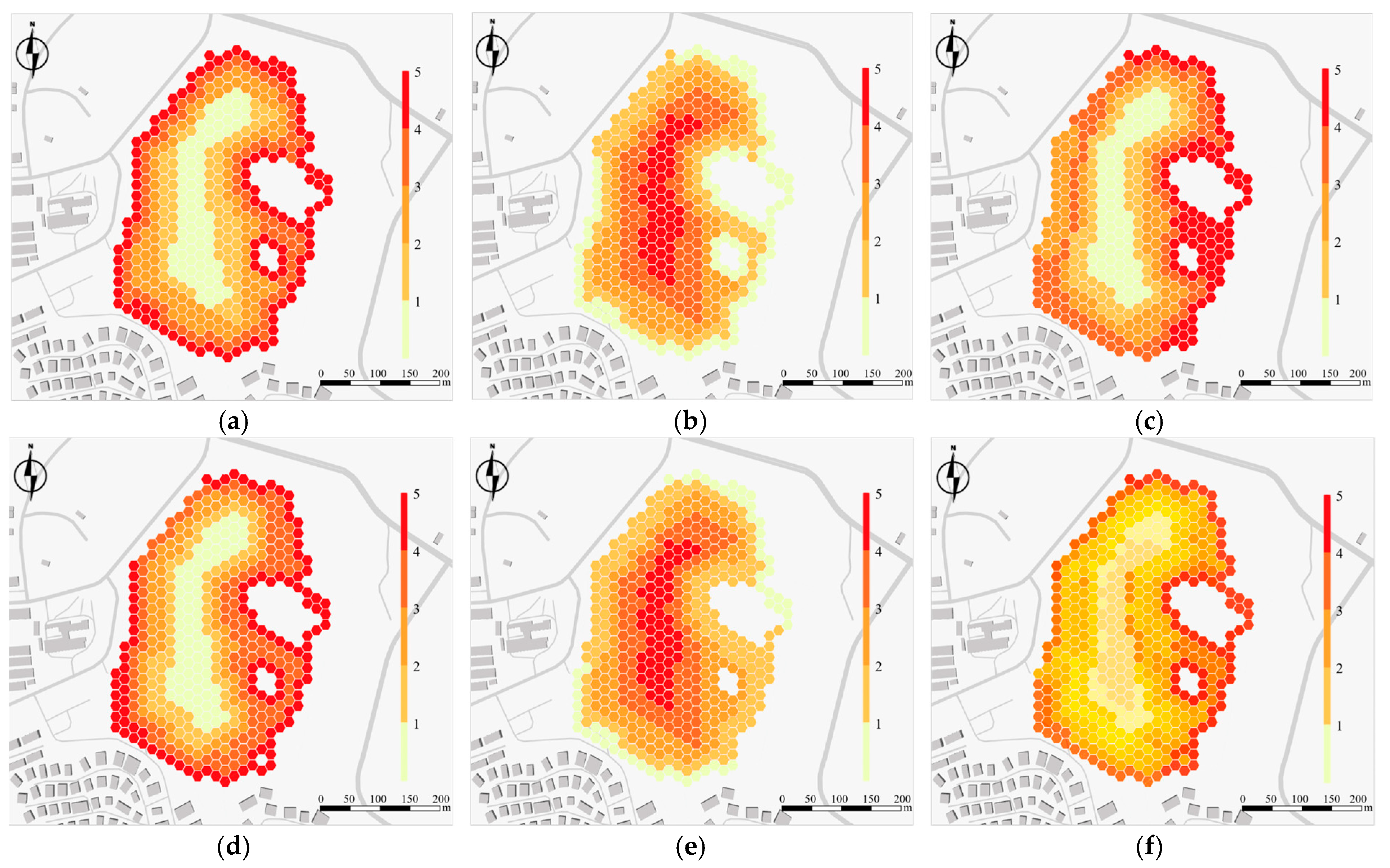 4.2. Comparison of Differences Among Urban Water Landscapes
