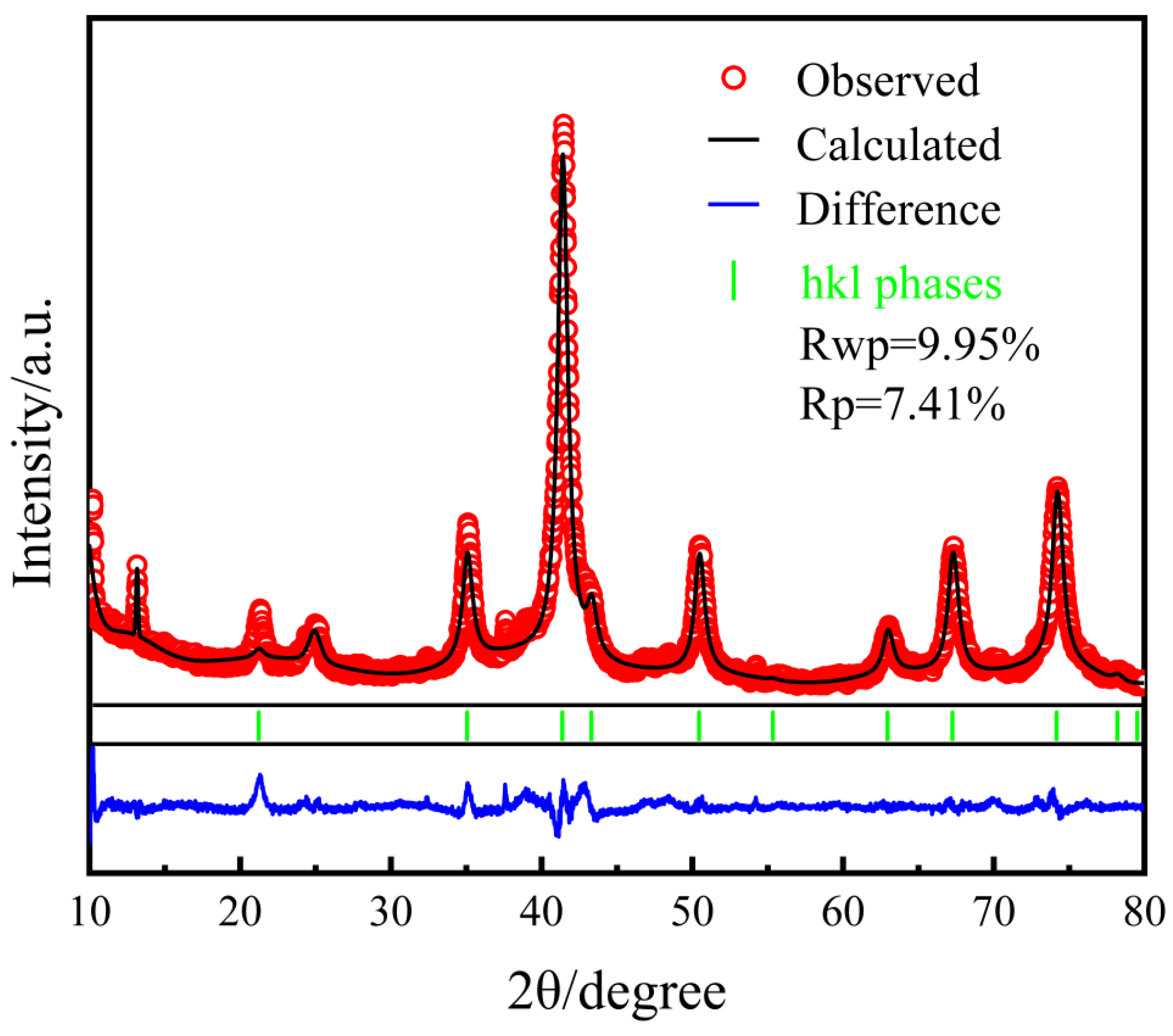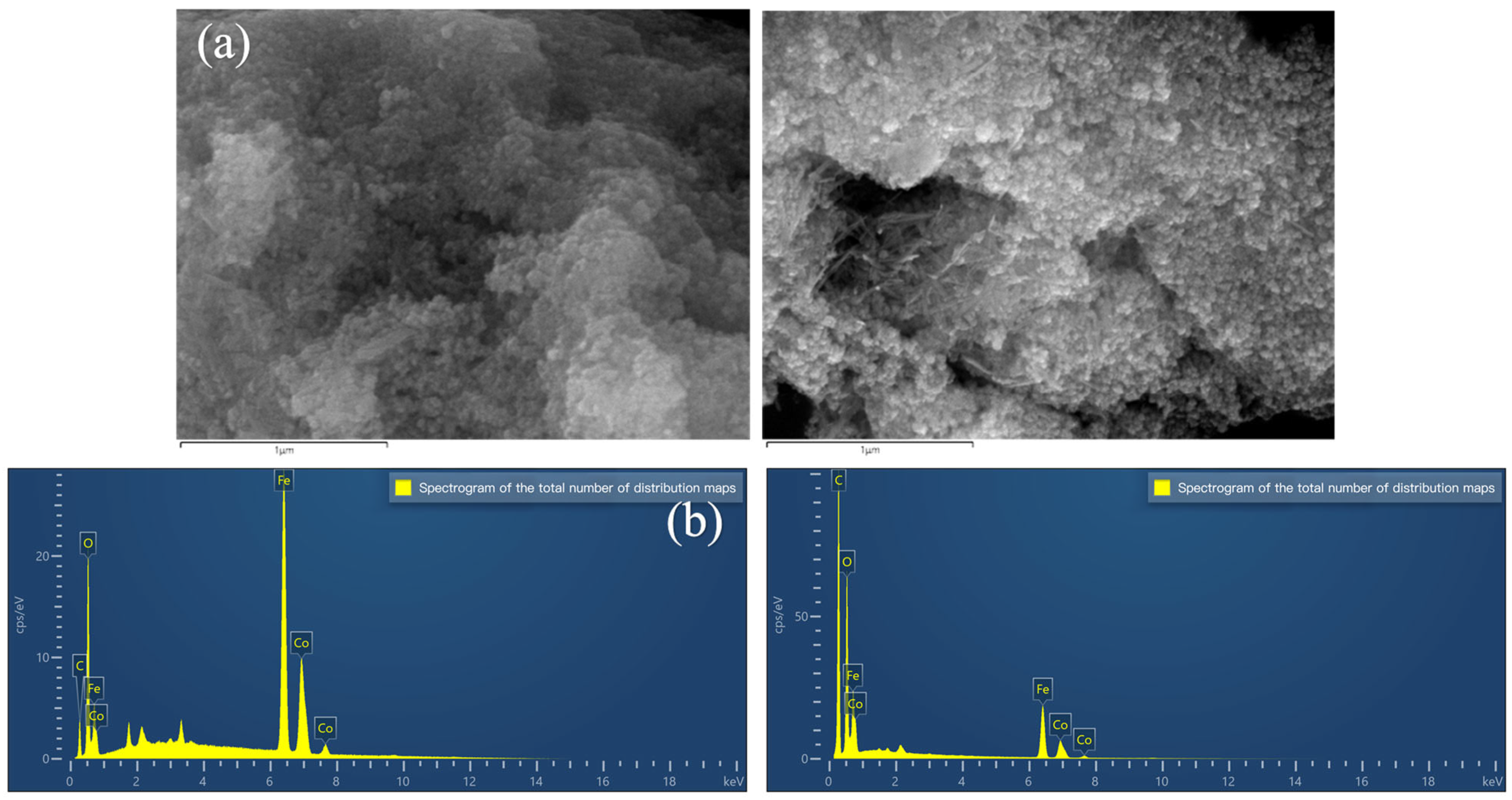 - The present study employs the coprecipitation method to integrate cobalt and iron into porous, high-surface-area CMC precursors at a Co:Fe ratio of 7:3, thereby constructing high-quality soft magnetic FeCo materials with iron–cobalt alloys. SEM and XRD characterizations reveal that the prepared FeCo sample exhibits the characteristic peaks of soft magnetic iron–cobalt alloy materials and a typical solid solution structure. Its abundant pore structure is conducive to the surface and pore adsorption of polyethylene microplastics.