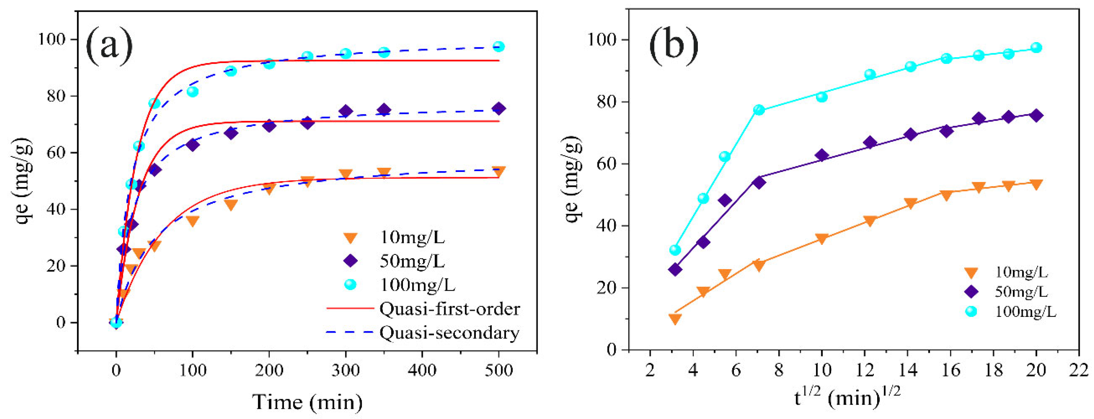 - Wang, J.; Guo, X. Adsorption kinetic models: Physical meanings, applications, and solving methods. J. Hazard. Mater. 2020, 390, 122156. [Google Scholar] [CrossRef]