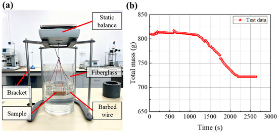Disintegration test apparatus and mass change: (a) test apparatus and (b) mass change.