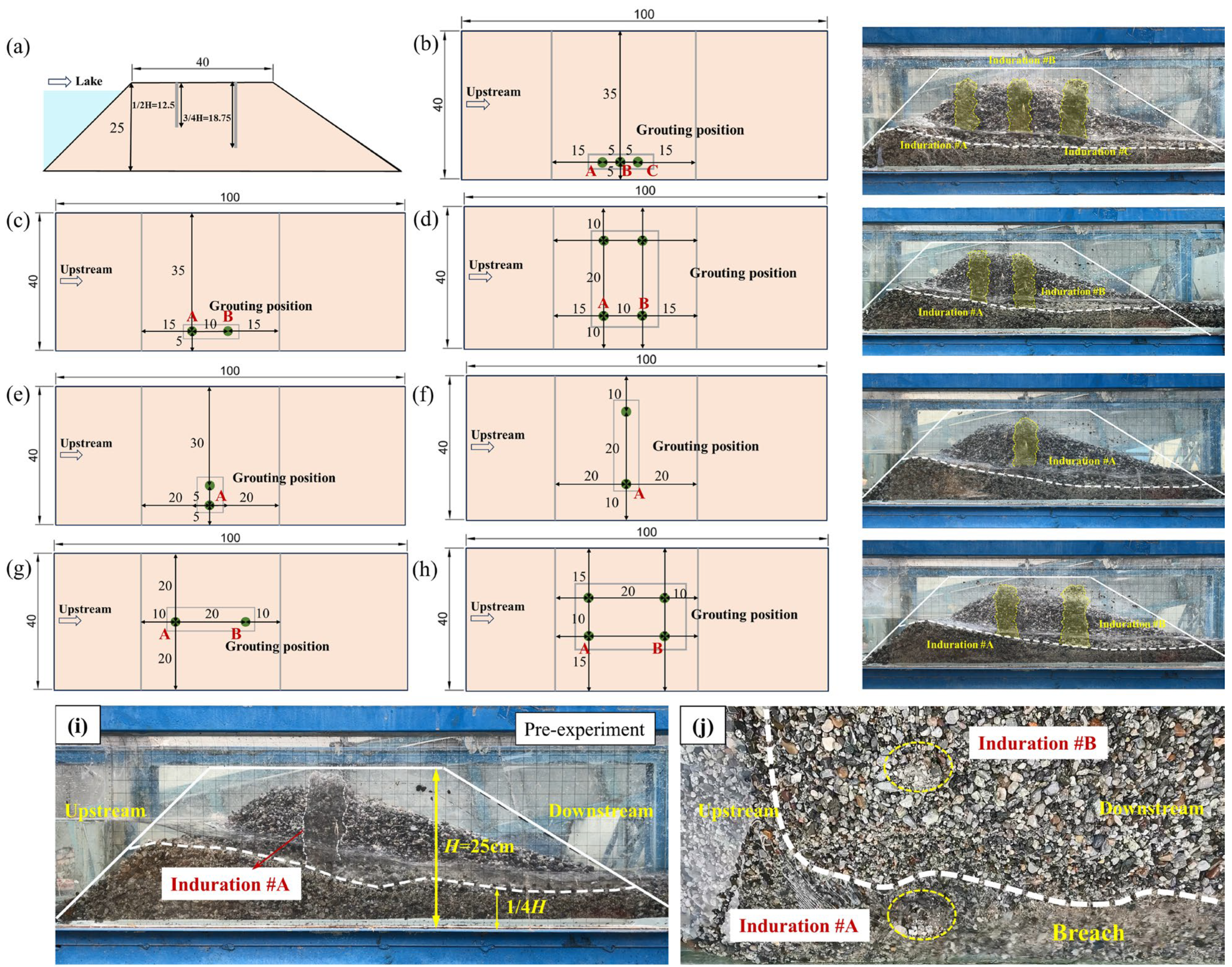 | Pre-experiment | \ | Uniformly distributed in the dam | 0.5H | 1 × 2 | 10 | \ | 1.35 |