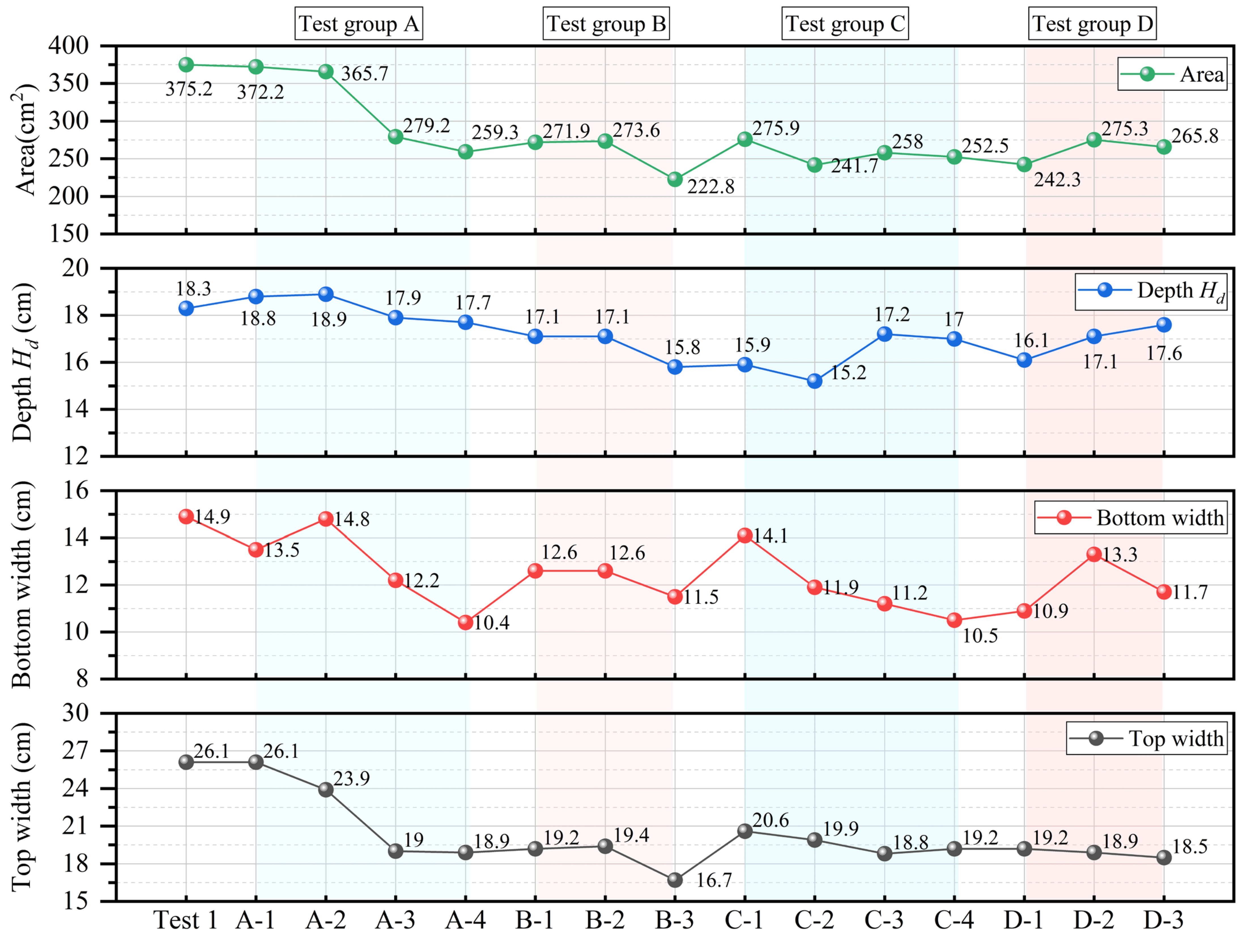 | D | 1 | Concentrated distribution in the breach | 0.75H | 2 × 1 | 10 | \ | 1.35 |