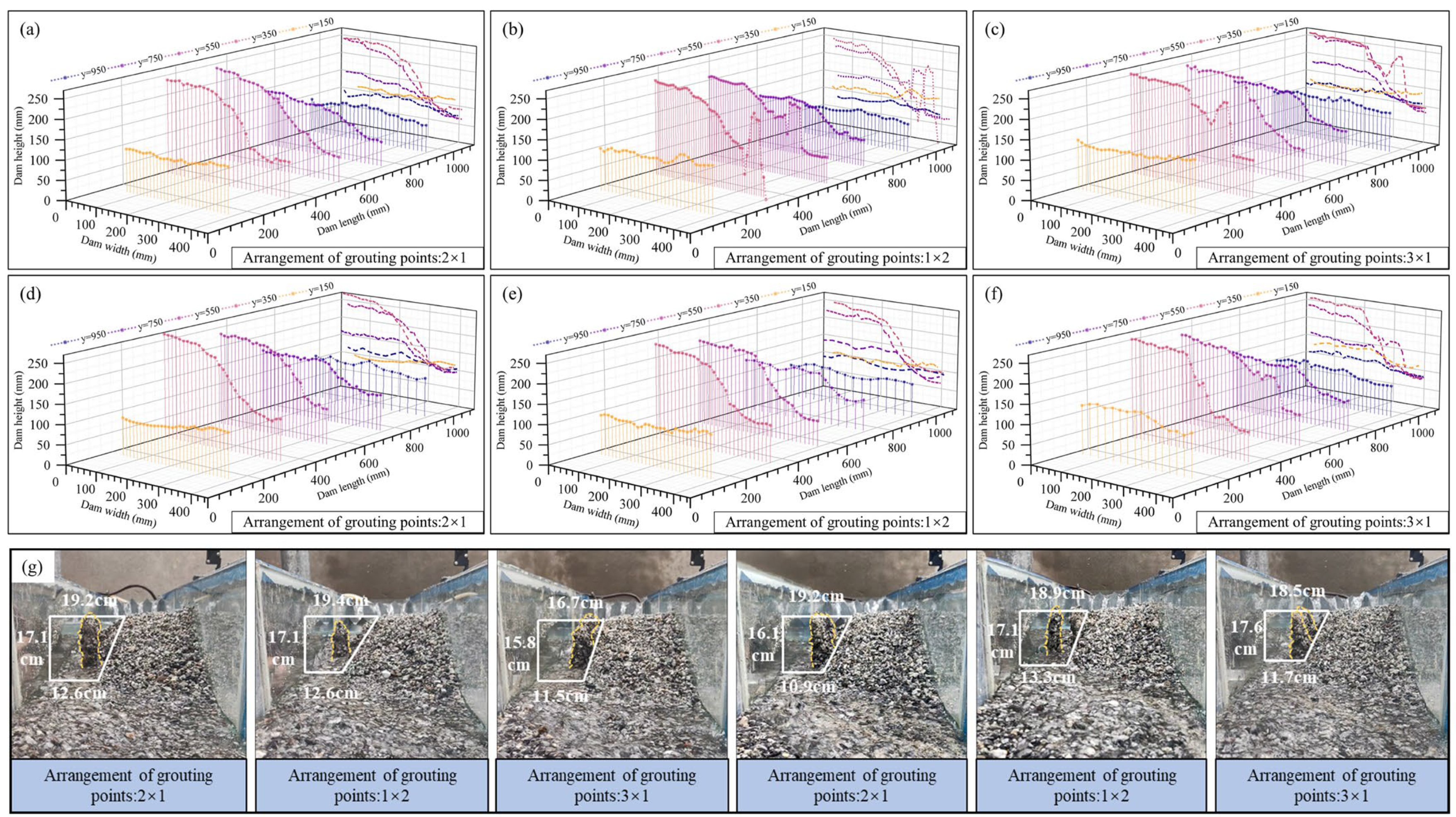 4.3. Influence of Grouting Parameters on the Effectiveness of Flow Control