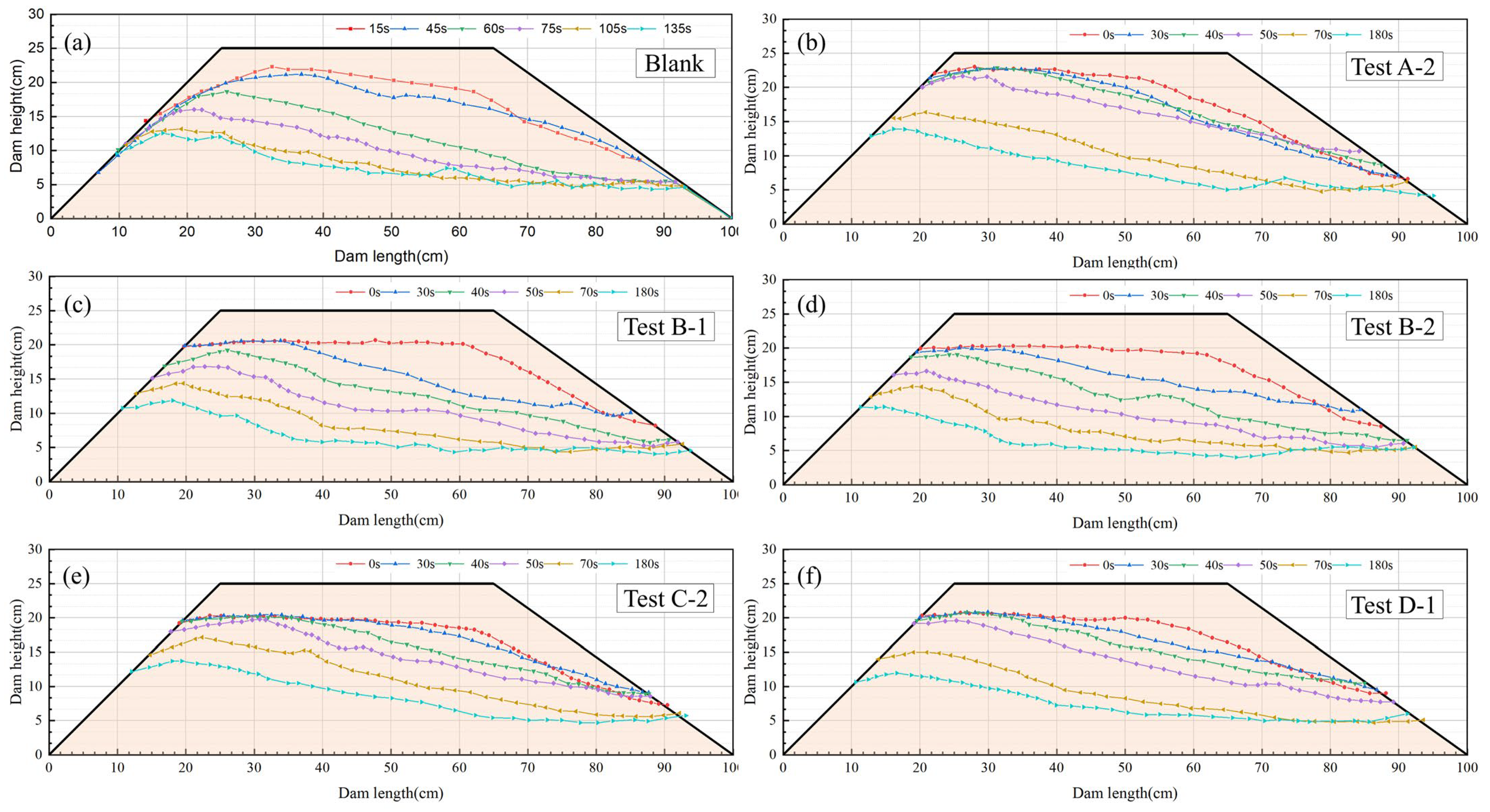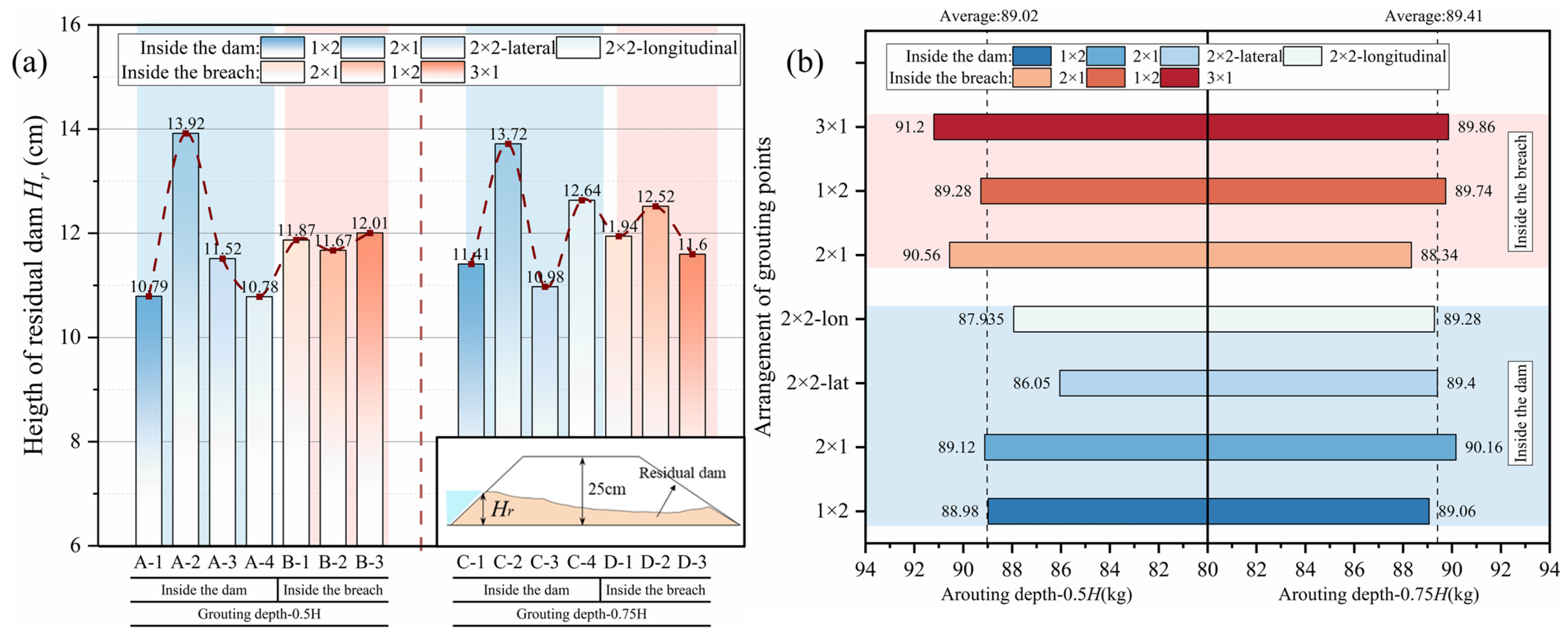 4.1. Influence of Water-Blocking Effect on Breach Reduction