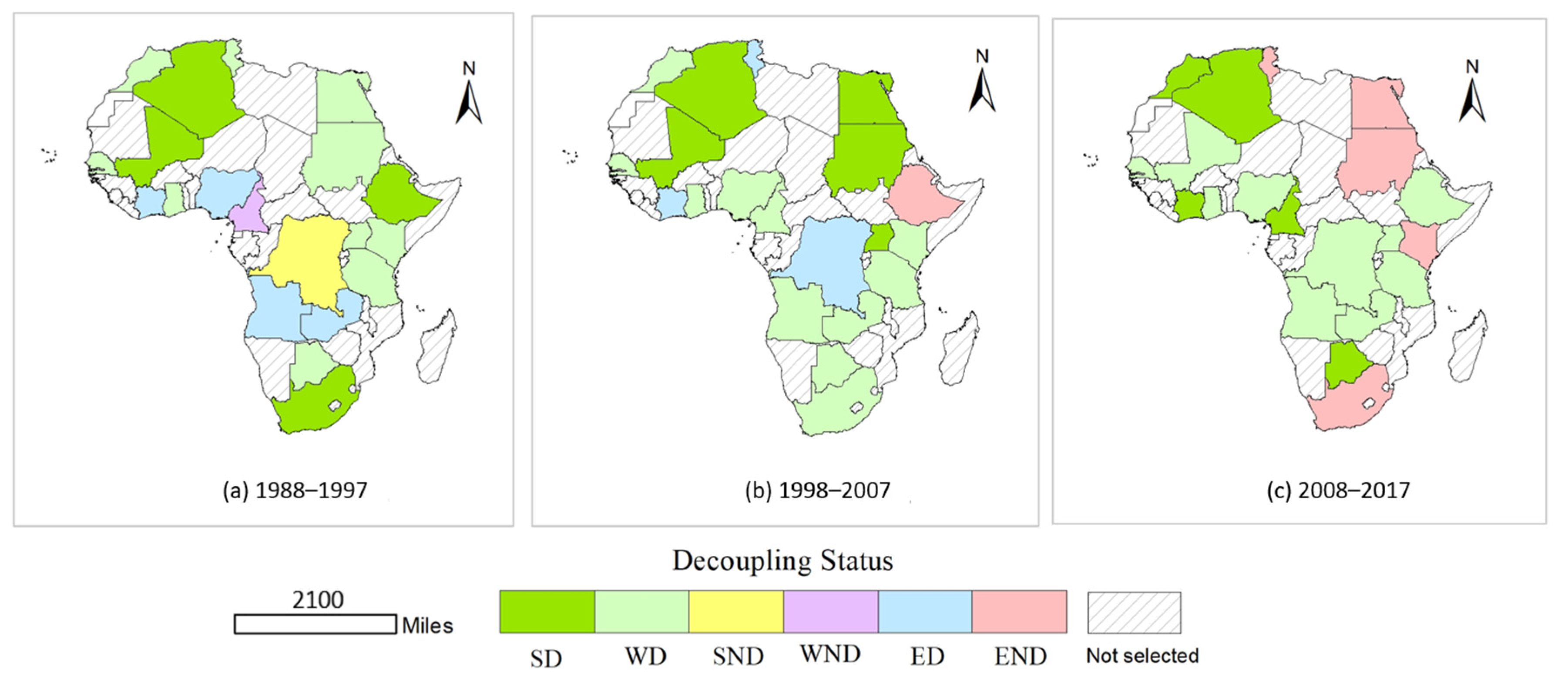 - Simbi, C.H.; Lin, J.; Yang, D.; Ndayishimiye, J.C.; Liu, Y.; Li, H.; Xu, L.; Ma, W. Decomposition and decoupling analysis of carbon dioxide emissions in African countries during 1984–2014. J. Environ. Sci. 2021, 102, 85–98. [Google Scholar] [CrossRef]