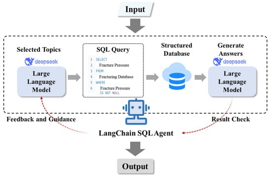 This system’s intelligent question-answering functionality is based on an architecture that combines a large language model (LLM) with an SQLAgent, using the LangChain agent model as the core framework. Integrating the DeepSeek LLM and an SQLAgent module enables the system to seamlessly convert and interact between natural language and structured query language (SQL), as illustrated in Figure 8.