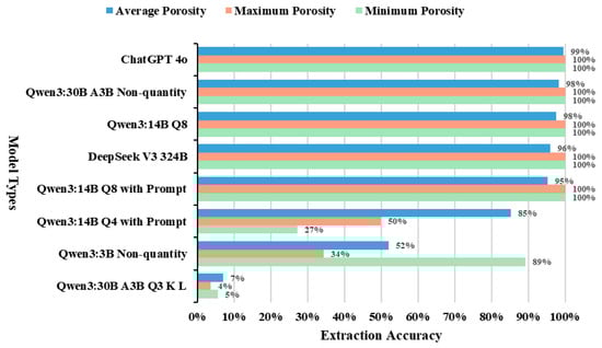 Model Extraction Accuracy Comparison Bar Chart (Porosity Extraction Test).