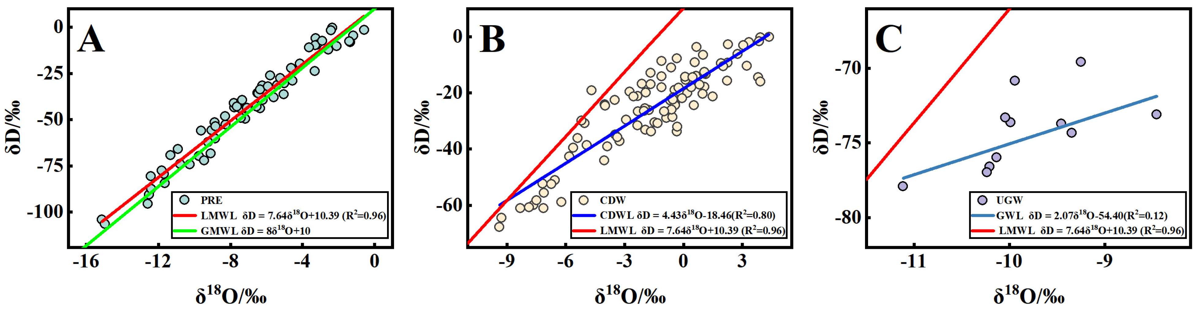 3.1.2. The Precipitation Line, Surface Water Line and Groundwater Line