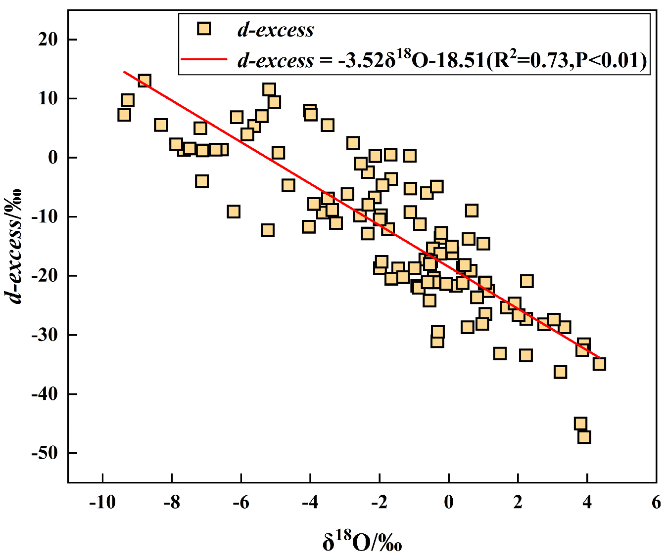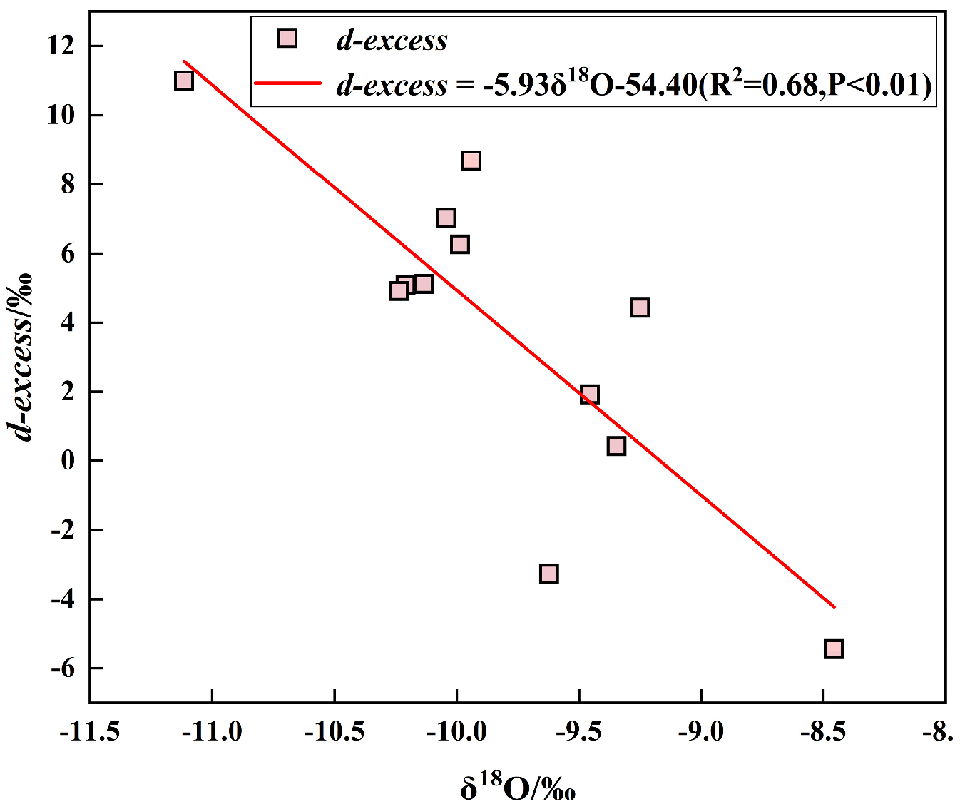 3.1.4. The Relationship Between δ18O and D-Excess Values of Surface Water and Groundwater and Distance