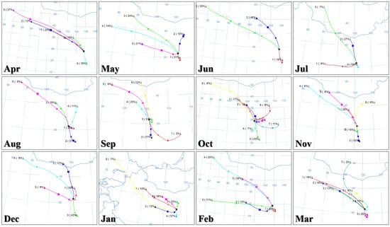- Cui, L.; Song, X.; Zhong, G. Comparative analysis of three methods for HYSPLIT atmospheric trajectories clustering. Atmosphere 2021, 12, 698. [Google Scholar] [CrossRef]