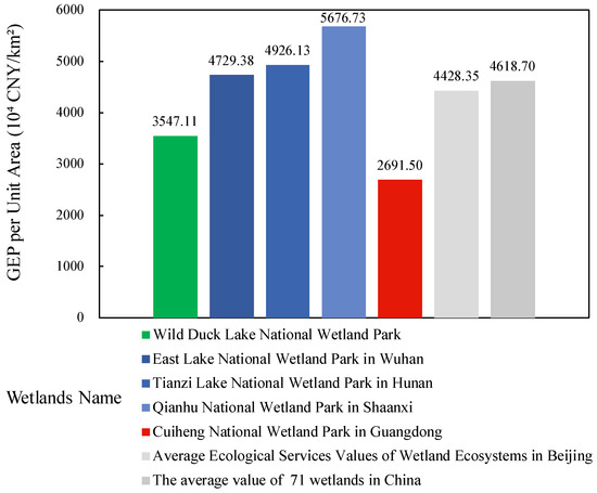 In contrast, Wild Duck Lake and East Lake Wetland Parks, as urban or semi-artificial wetlands, are more affected by anthropogenic management and infrastructure. Their hydrological cycles and ecological functions depend heavily on artificial regulation, which weakens their natural regulating capacity [60]. Meanwhile, these wetlands provide considerable cultural and recreational benefits to nearby residents, leading to a higher proportion of provisioning and cultural services in their total GEP value. Regional climate and hydrological conditions further reinforce these differences [61]. Southern wetlands such as those in Hunan and Shaanxi benefit from abundant precipitation and stable water connectivity, while northern wetlands like Wild Duck Lake are situated in semi-arid zones where water replenishment and ecological stability rely on artificial intervention [62]. Moreover, differences in management goals also contribute to this divergence: protection-oriented parks prioritize ecological restoration and conservation, while tourism-oriented parks emphasize cultural and recreational values [63].
