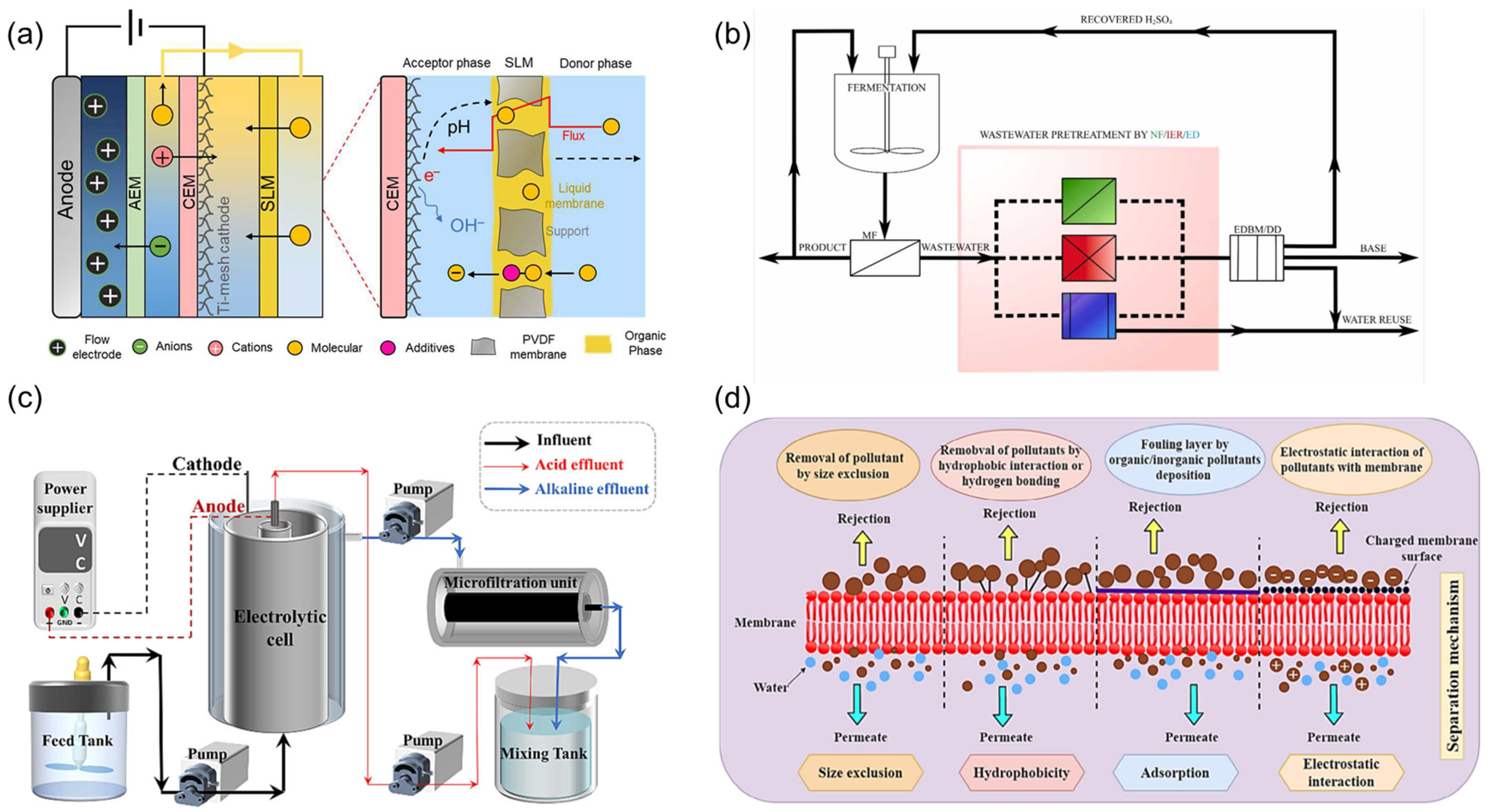 - Xu, L.; Zhang, Y.; Li, T.; Peng, S.; Wu, D. Simultaneous desalination and molecular resource recovery from wastewater using an electrical separation system integrated with a supporting liquid membrane. Water Res. 2023, 246, 120706. [Google Scholar] [CrossRef] [PubMed]