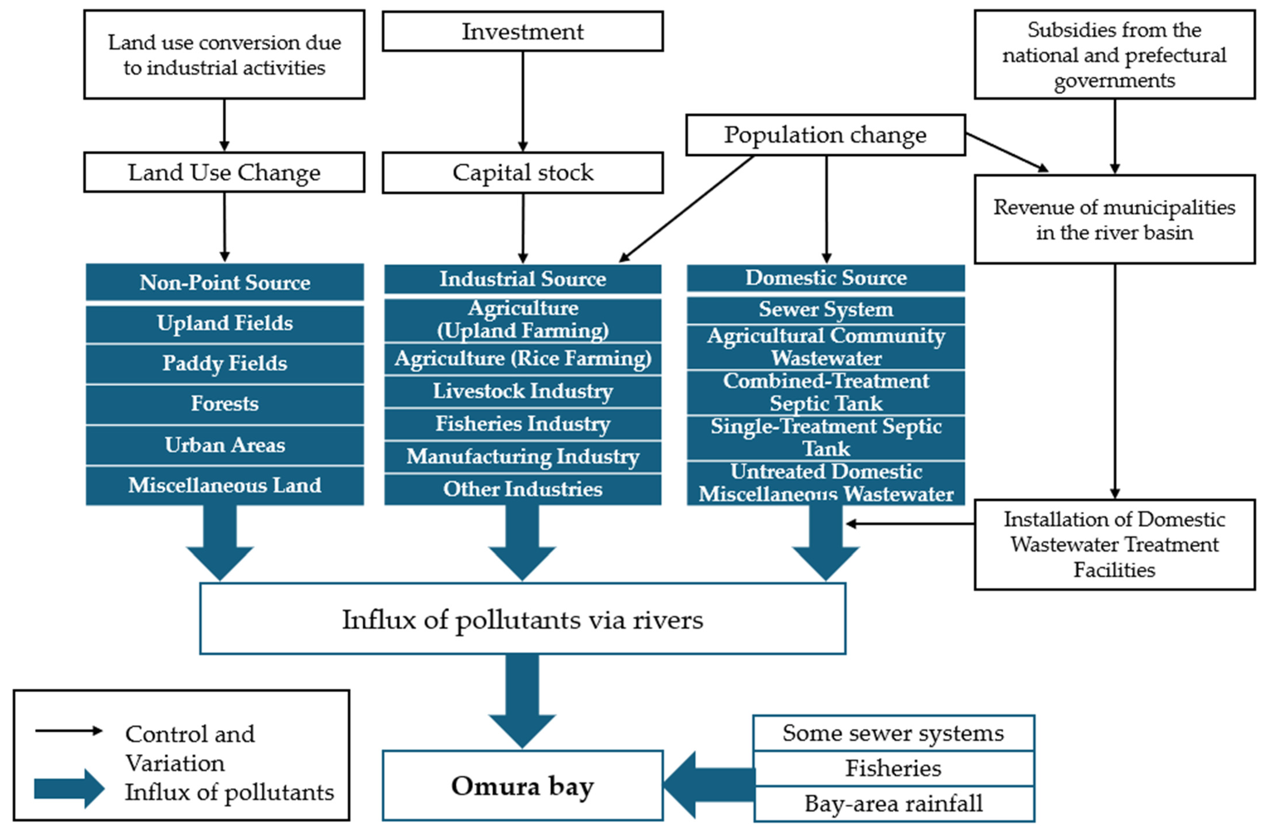 Therefore, this study explores economic approaches to reduce and manage pollutant discharges while simultaneously maintaining a balance between socioeconomic activities and the marine environment. We aim to bridge a gap in the literature by exploring an economic approach to managing pollutant discharges in the Omura Bay watershed.