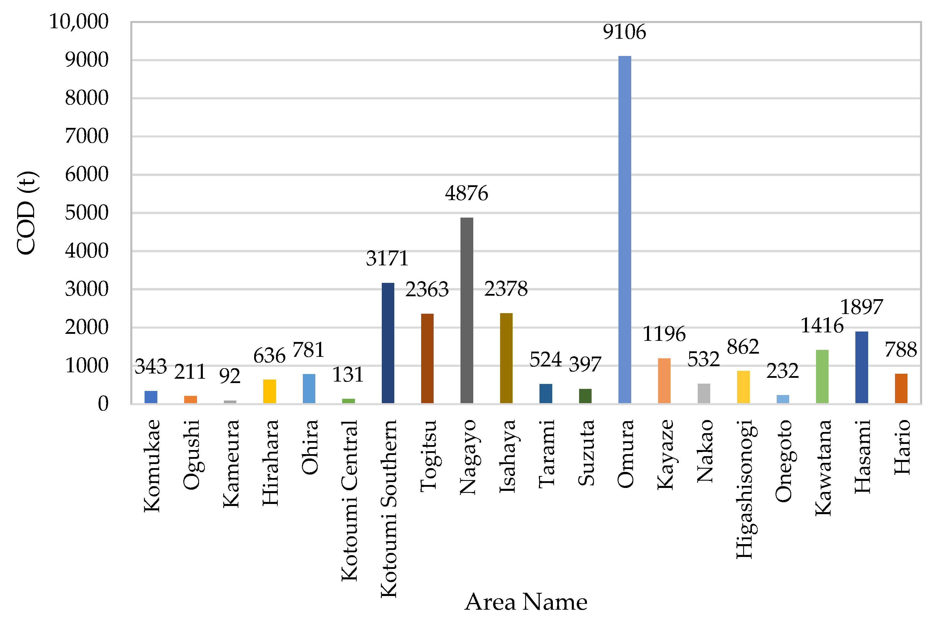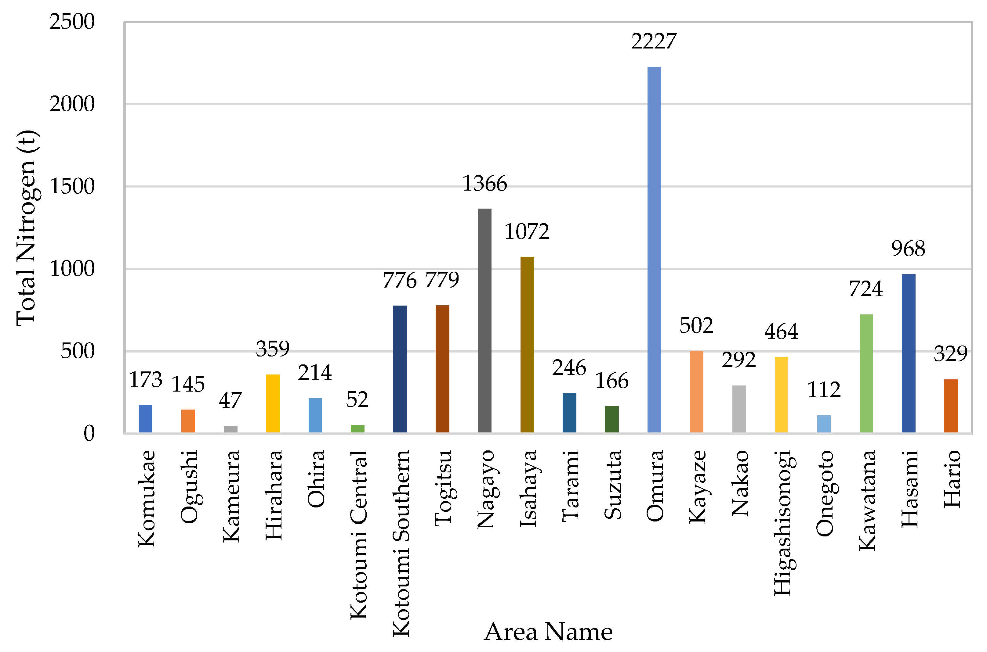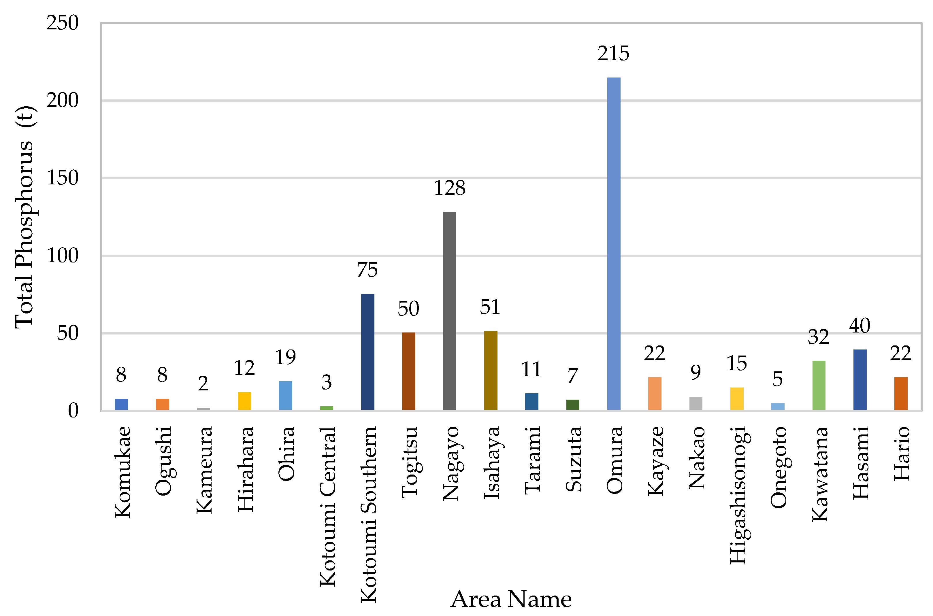 2.3.2. Pollutant Load Inflow into Omura Bay