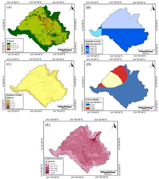 | Erosivity | Rainfall erosivity reflects the intensity and duration of rainfall in the area of interest. | https://esdac.jrc.ec.europa.eu/content/global-rainfall-erosivity (accessed on 17 December 2024) |
