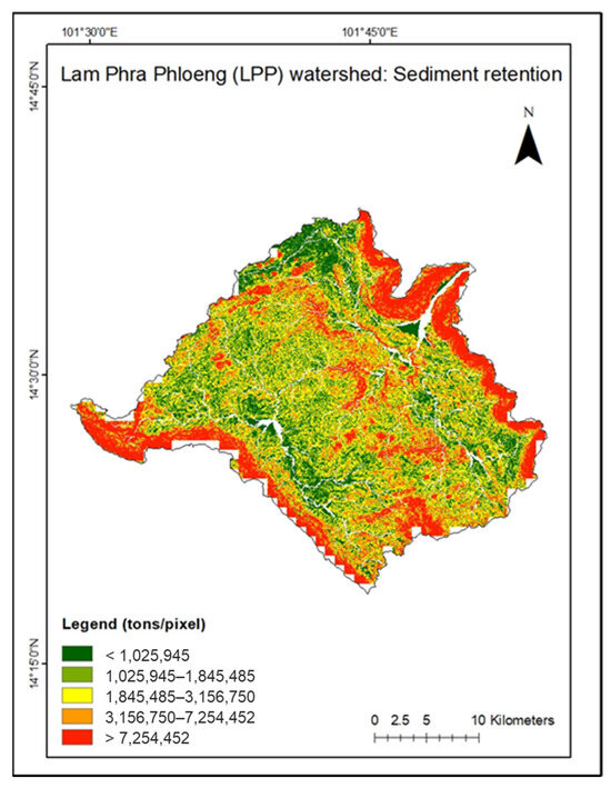 4.2. Soil Loss and Sediment Retention in Lam Phra Phloeng
