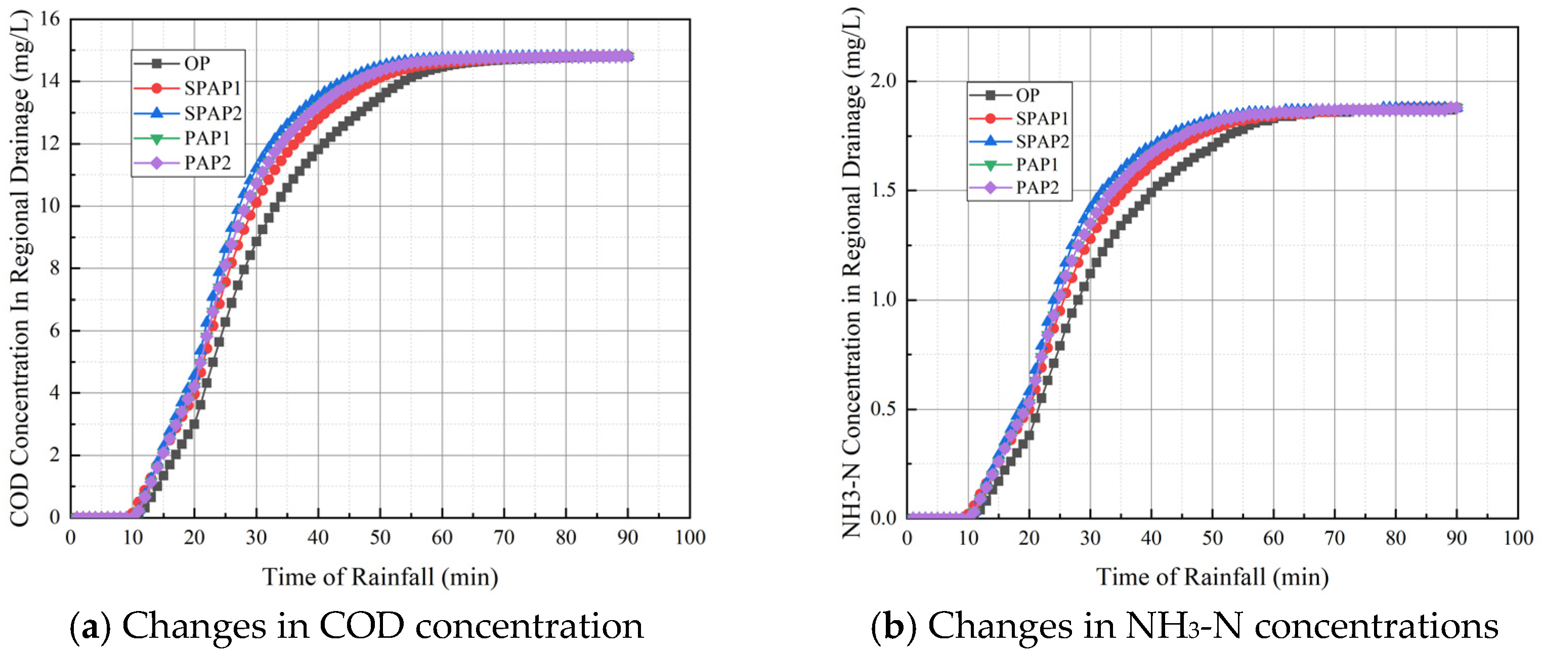 3.2.2. Effectiveness in Purifying Surface Runoff Water Quality