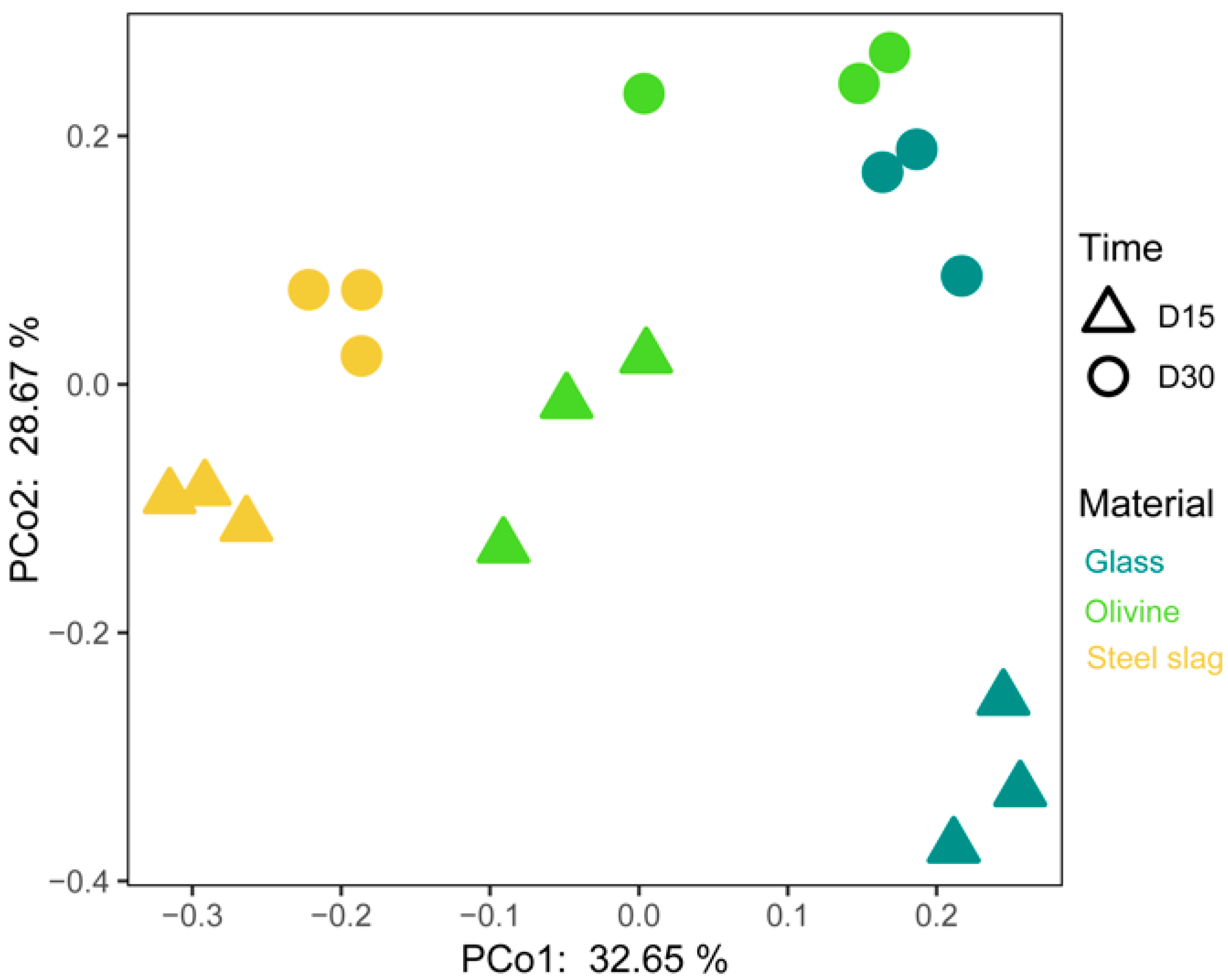 - Ren, H.; Hu, Y.; Liu, J.; Zhang, Z.; Mou, L.; Pan, Y.; Zheng, Q.; Li, G.; Jiao, N. Response of a coastal microbial community to olivine addition in the Muping Marine Ranch, Yantai. Front. Microbiol. 2022, 12, 805361. [Google Scholar] [CrossRef] [PubMed]