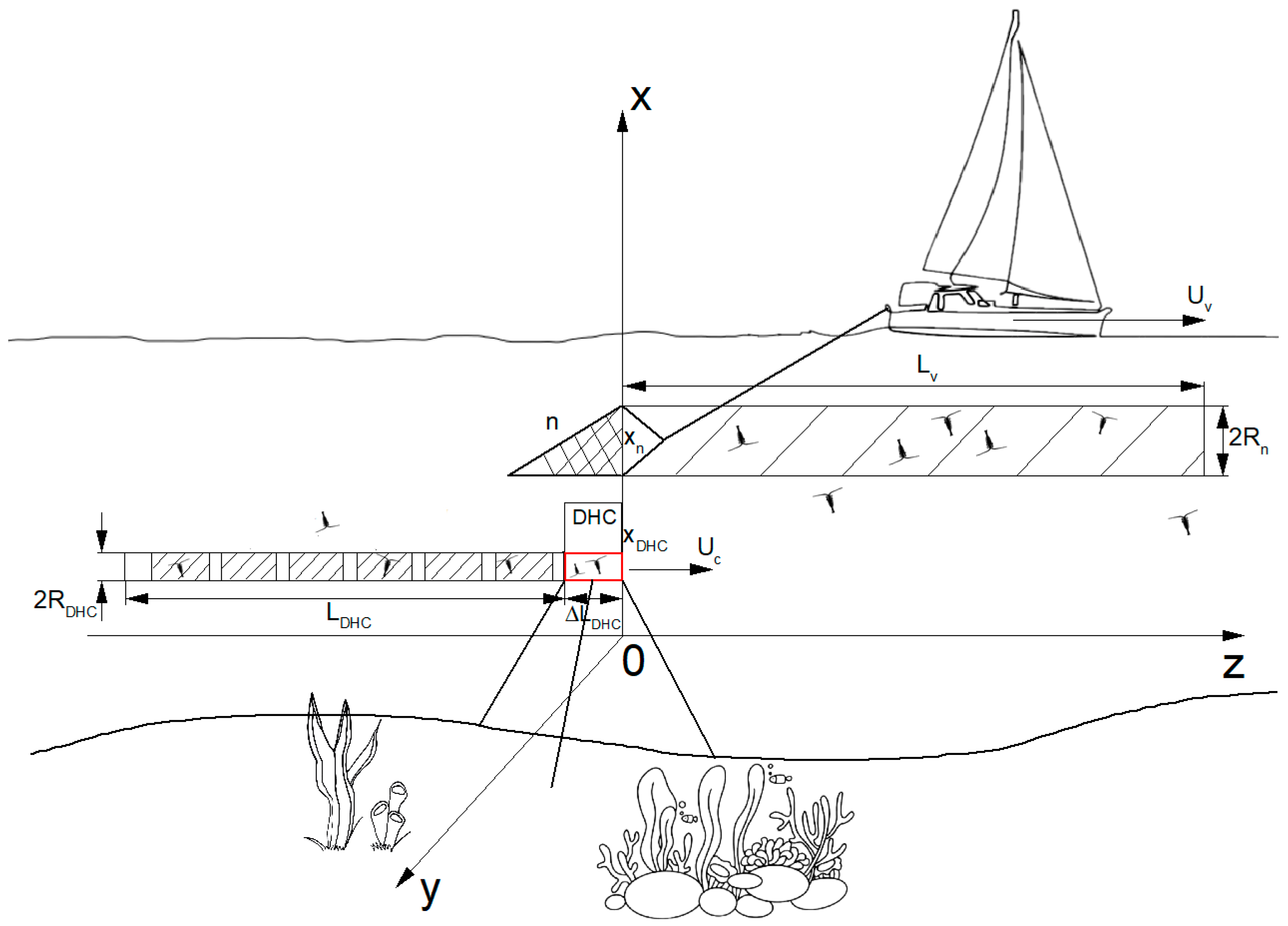 - —changes in the concentration of plankton under the influence of turbulence (t) caused by the current passing through/around the DHC—assessment of spatial variability,