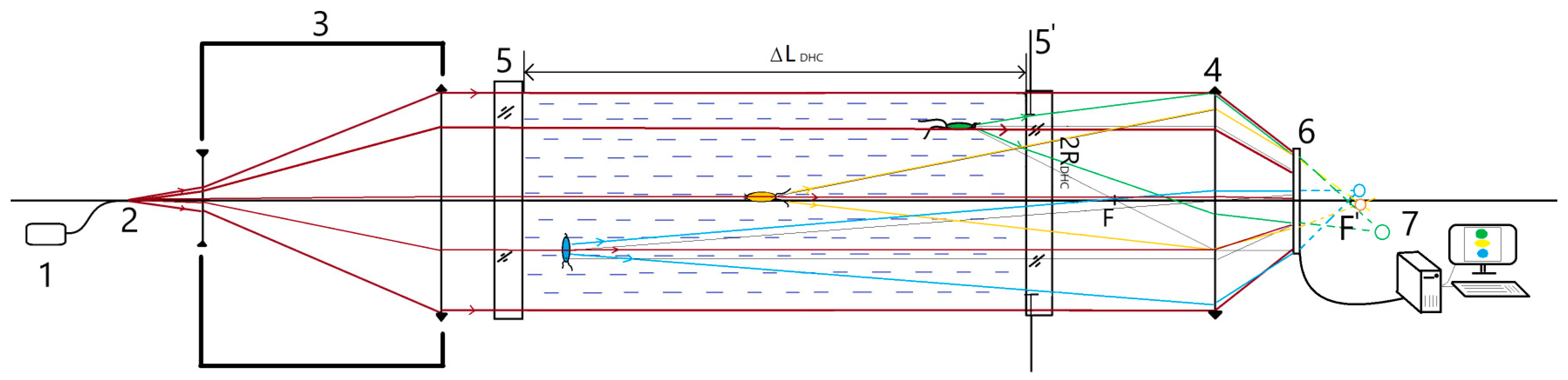 - Dyomin, V.; Polovtsev, I.; Davydova, A. Calibration for the Magnification of a Submersible Digital Holographic Camera during the Study of Particles in Natural Conditions. Appl. Opt. 2025, 64, B49–B57. [Google Scholar] [CrossRef]
