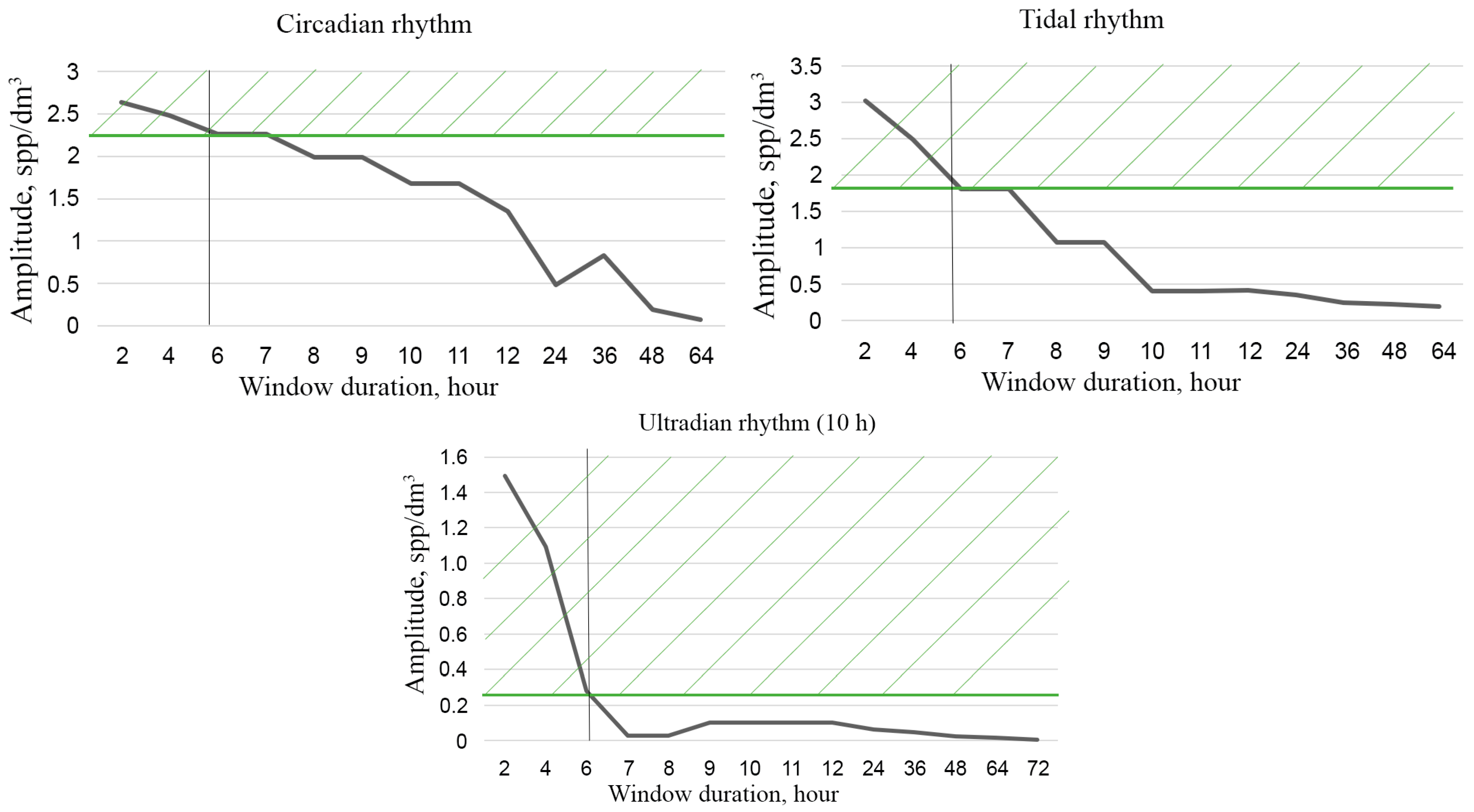 - —natural changes in the concentration of plankton as a result of migrations (m) during net transportation—assessment of temporal variability.