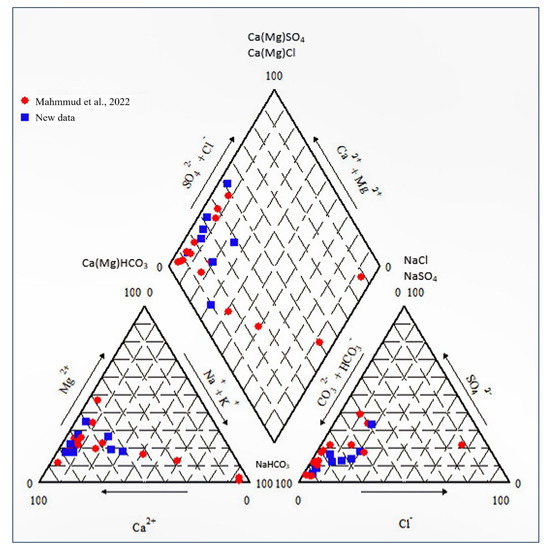 - Mahmmud, R.; Sracek, O.; Mustafa, O.; Čejková, B.; Jačková, I.; Vondrovicová, L. Groundwater geochemistry evolution and geogenic contaminants in the Sulaimani–Warmawa Sub-basin, Sulaimani, Kurdistan Region, Iraq. Environ. Monit. Assess. 2022, 194, 352. [Google Scholar] [CrossRef]