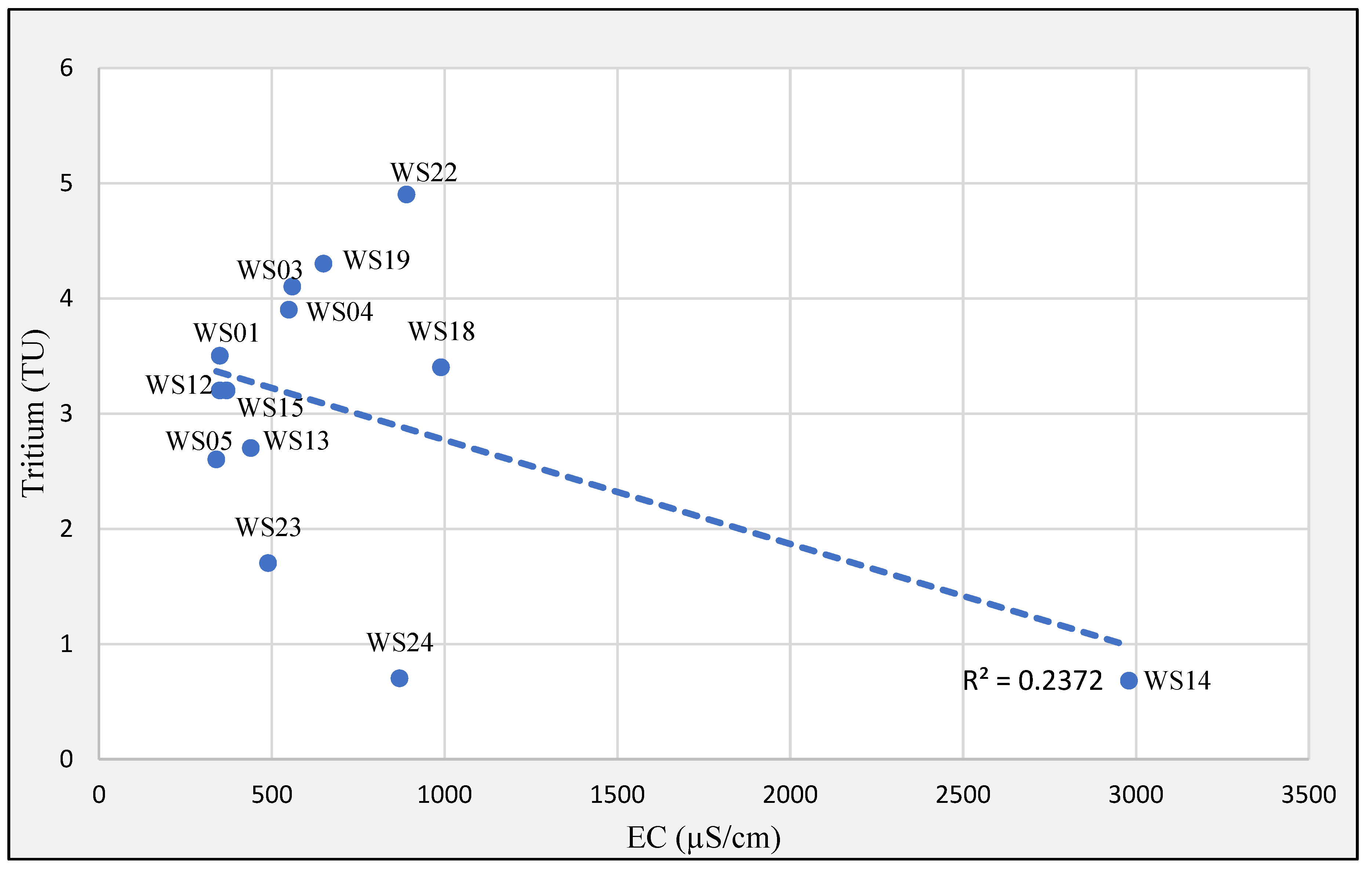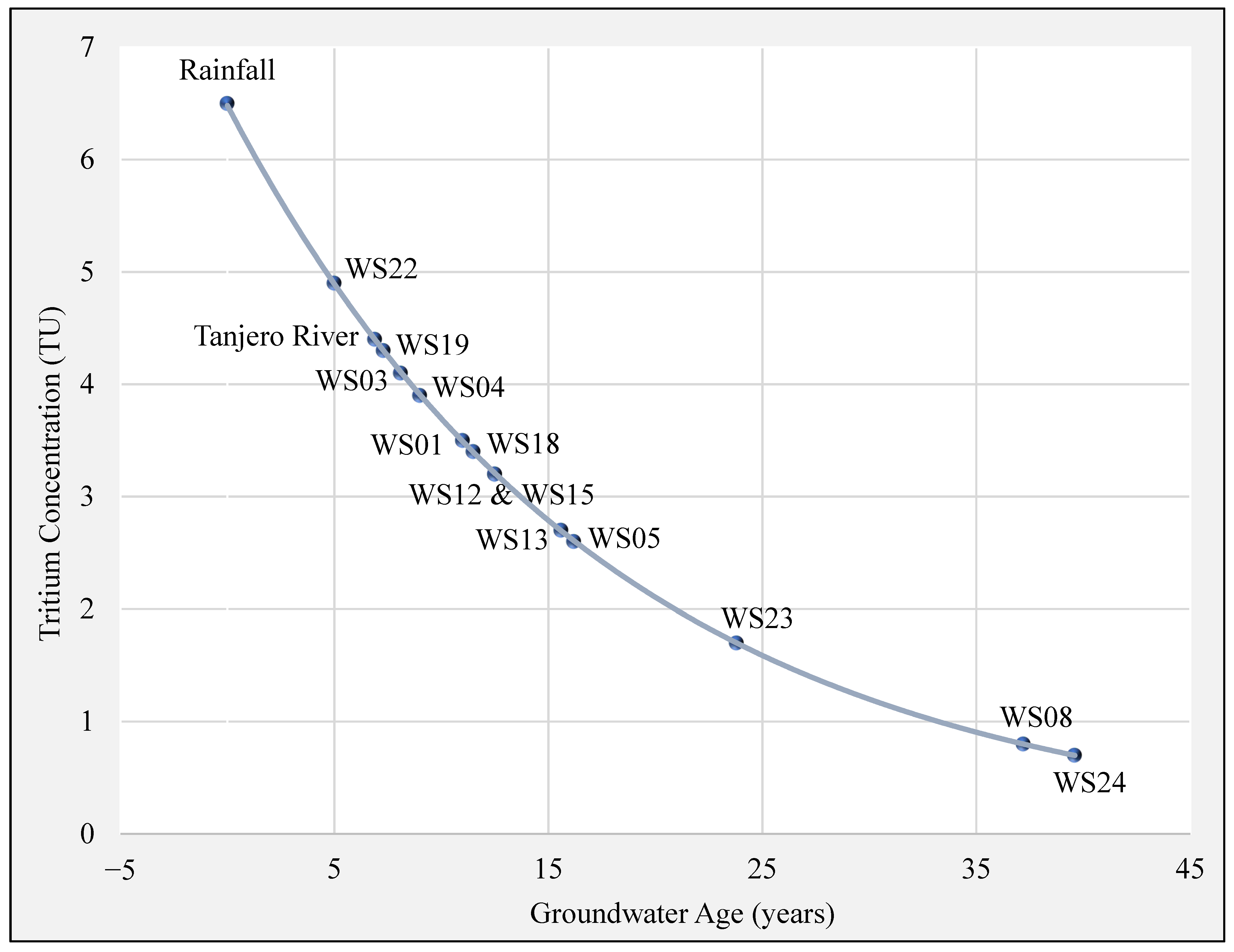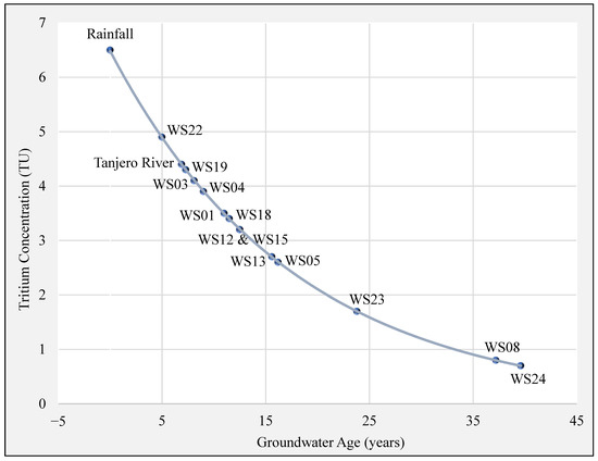 Motzer [48] suggested that the tritium values in groundwater below 0.8 TU indicate old/sub-modern groundwater (originating before 1950).