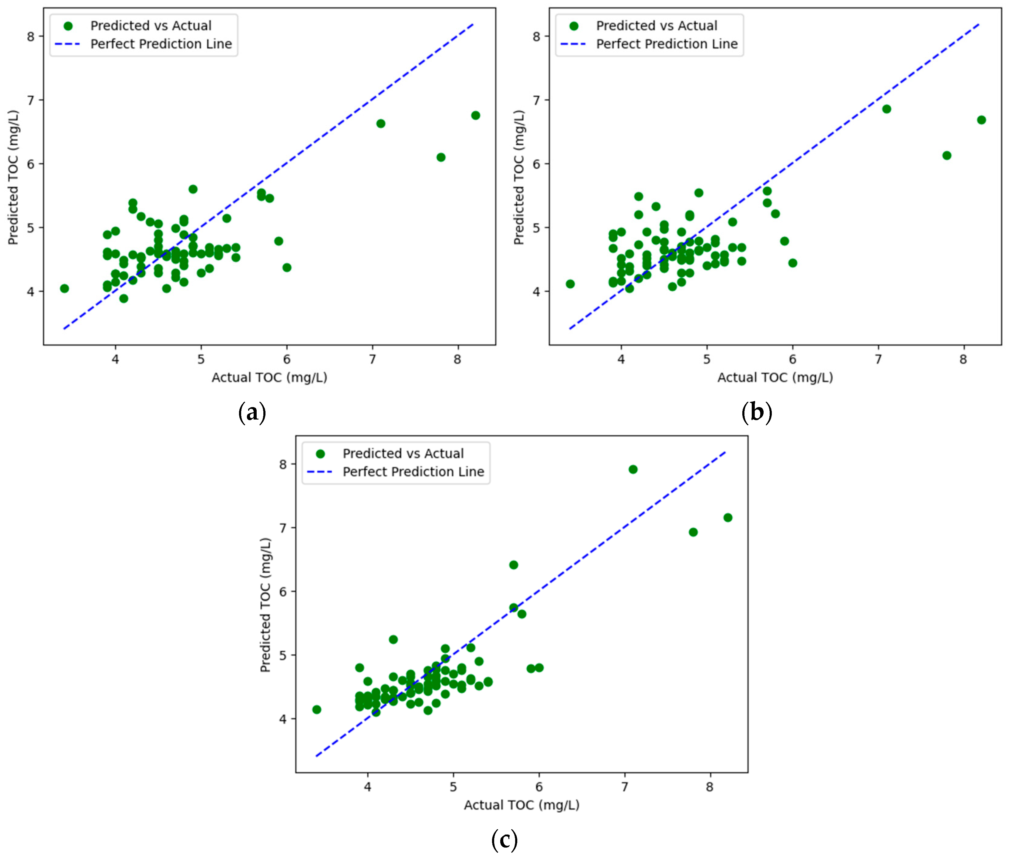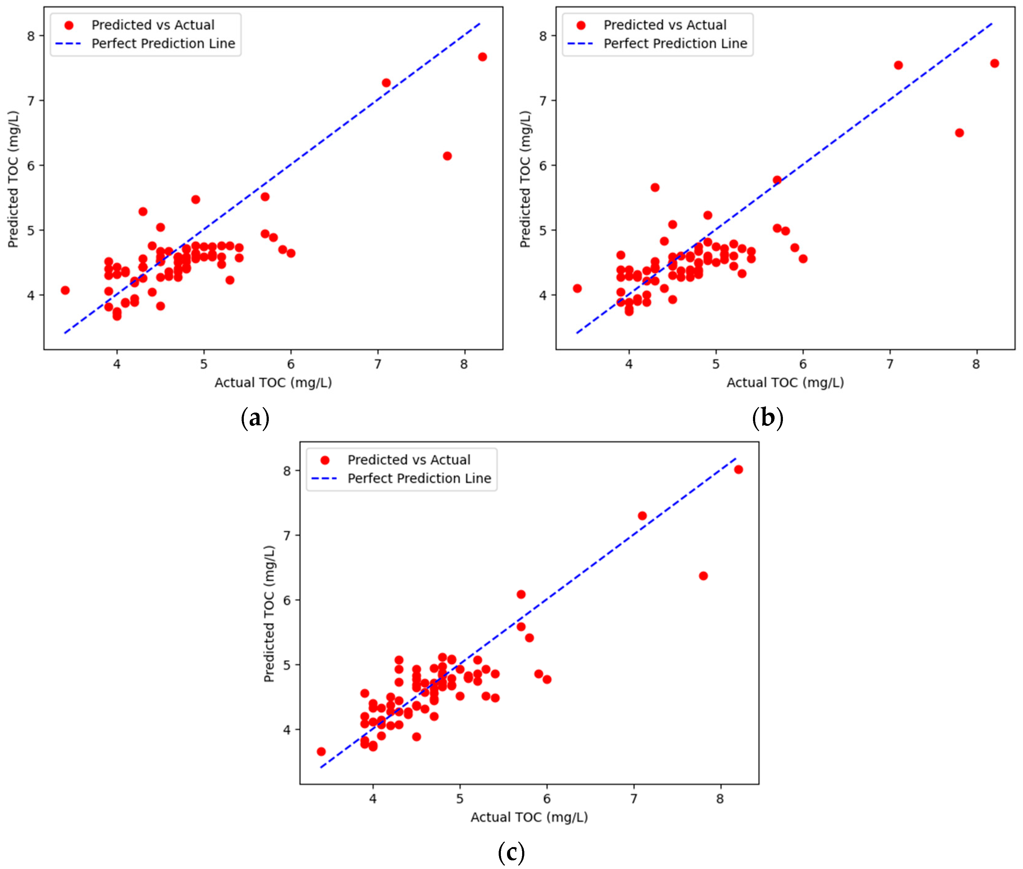 - Goz, E.; Yuceer, M.; Karadurmus, E. Total organic carbon prediction with artificial intelligence techniques. In Computer Aided Chemical Engineering; Elsevier: Amsterdam, The Netherlands, 2019; Volume 46, pp. 889–894. [Google Scholar] [CrossRef]