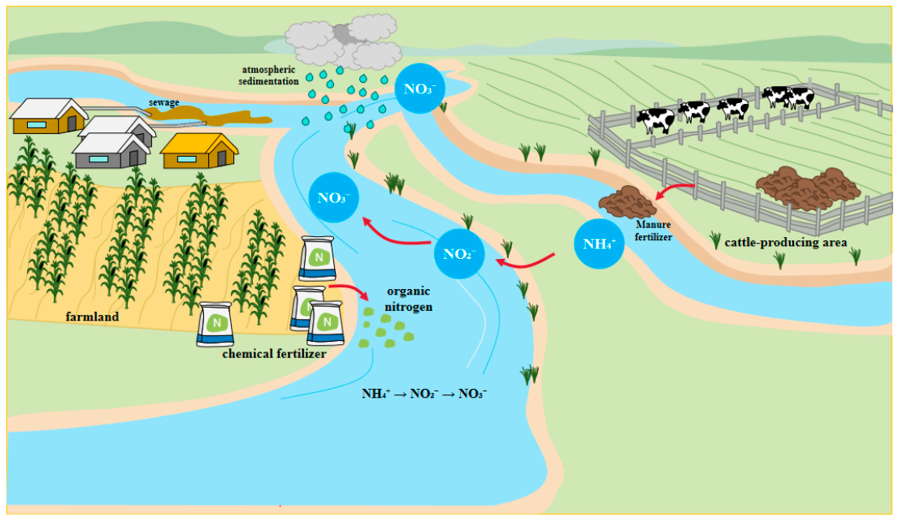 - Zhang, E.; Jiang, J.; Guo, J.; Peng, J.; Lei, K.; Cheng, Q.; Bai, Z. Nitrogen pollution characteristics and nitrate sources analysis in Yinma River Basin of Qinhuangdao City. J. Environ. Eng. Technol. 2025, 15, 882–891. [Google Scholar]