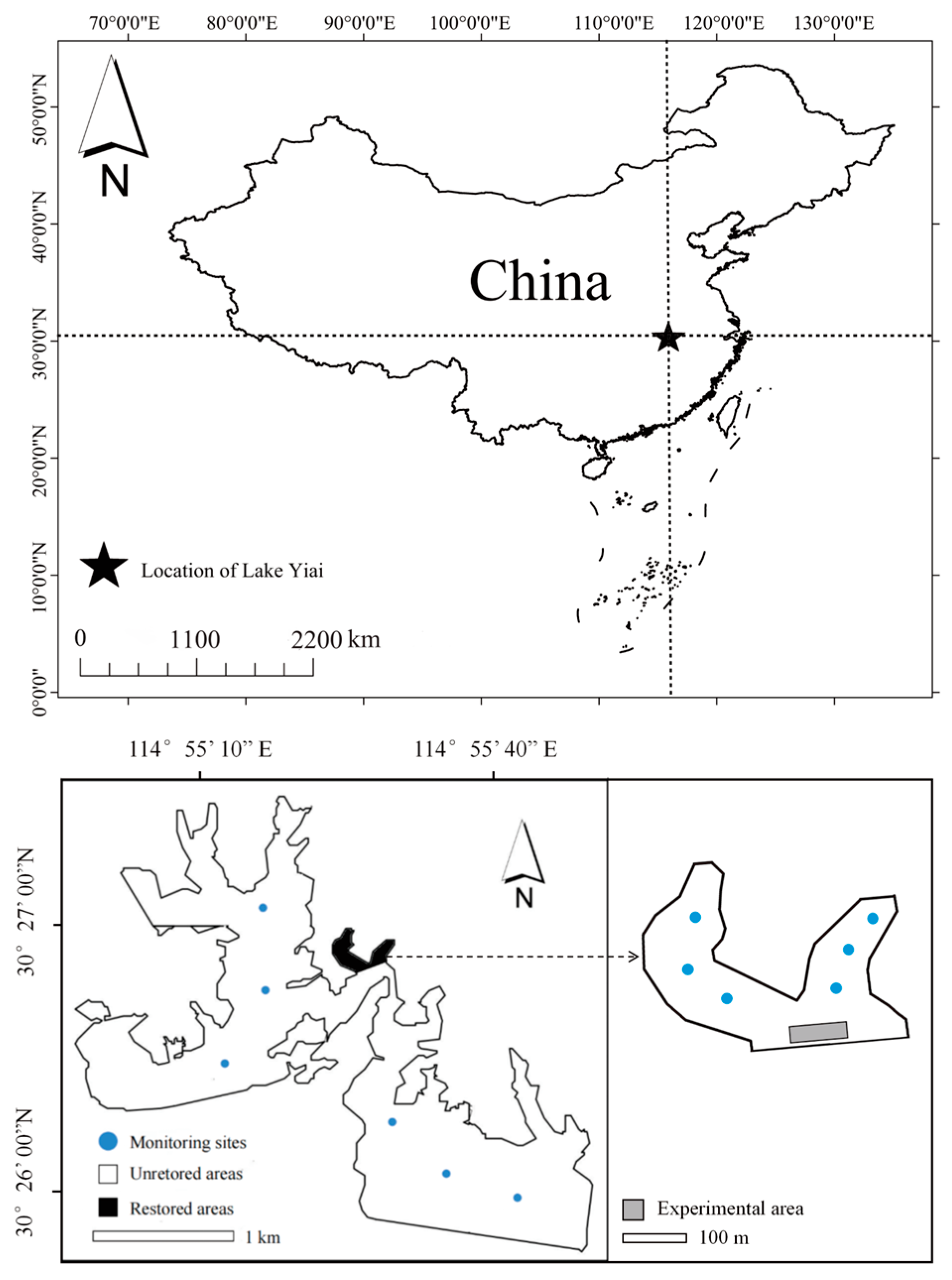 - Li, B.; Chen, D.; Lu, J.; Liu, S.; Wu, J.; Gan, L.; Yang, X.; He, X.; He, H.; Yu, J.; et al. Restoring Turbid Eutrophic Shallow Lakes to a Clear-Water State by Combined Biomanipulation and Chemical Treatment: A 4-Hectare in-Situ Experiment in Subtropical China. J. Environ. Manag. 2025, 380, 125061. [Google Scholar] [CrossRef]