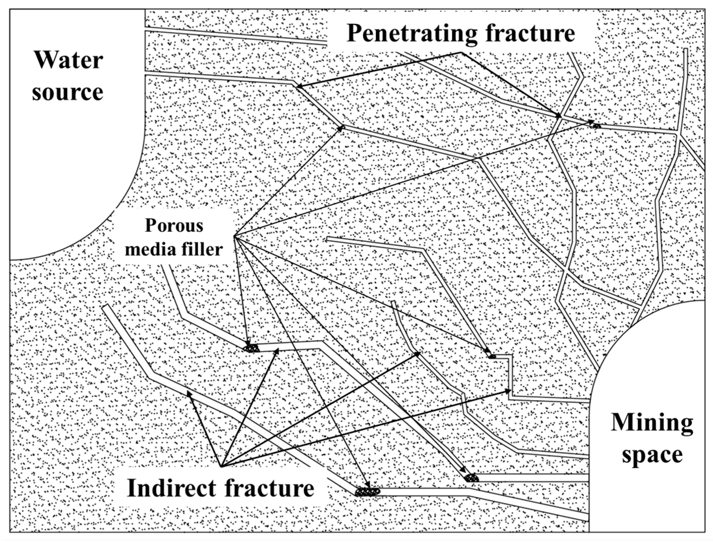 Naturally occurring and engineering-disturbed rock masses (such as those surrounding chambers, roadways, and excavation faces) contain widespread fractures that form critical seepage channel networks between groundwater sources and underground engineering spaces.