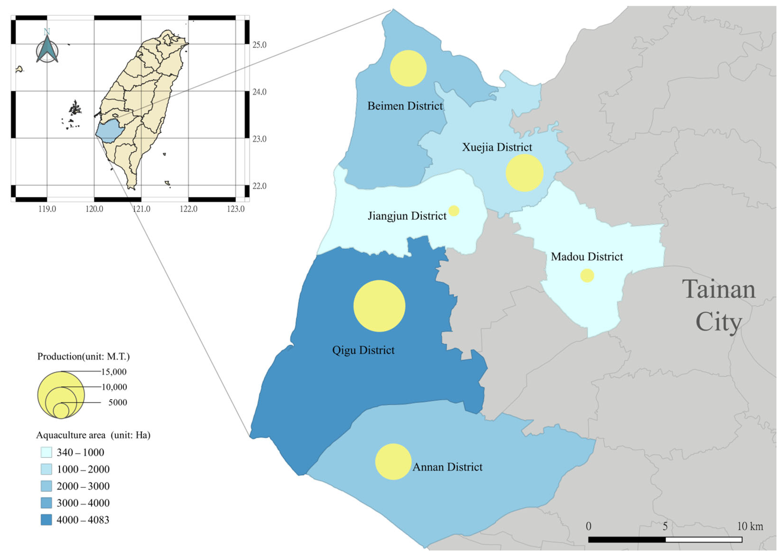 - Taiwan Fisheries Agency. Fisheries Statistical Yearbook: Taiwan, Kinmen and Matsu Area; Taiwan Fisheries Agency: Taipei, Taiwan, 2022. Available online: https://www.fa.gov.tw/list.php?theme=FS_AR&subtheme= (accessed on 12 October 2025).