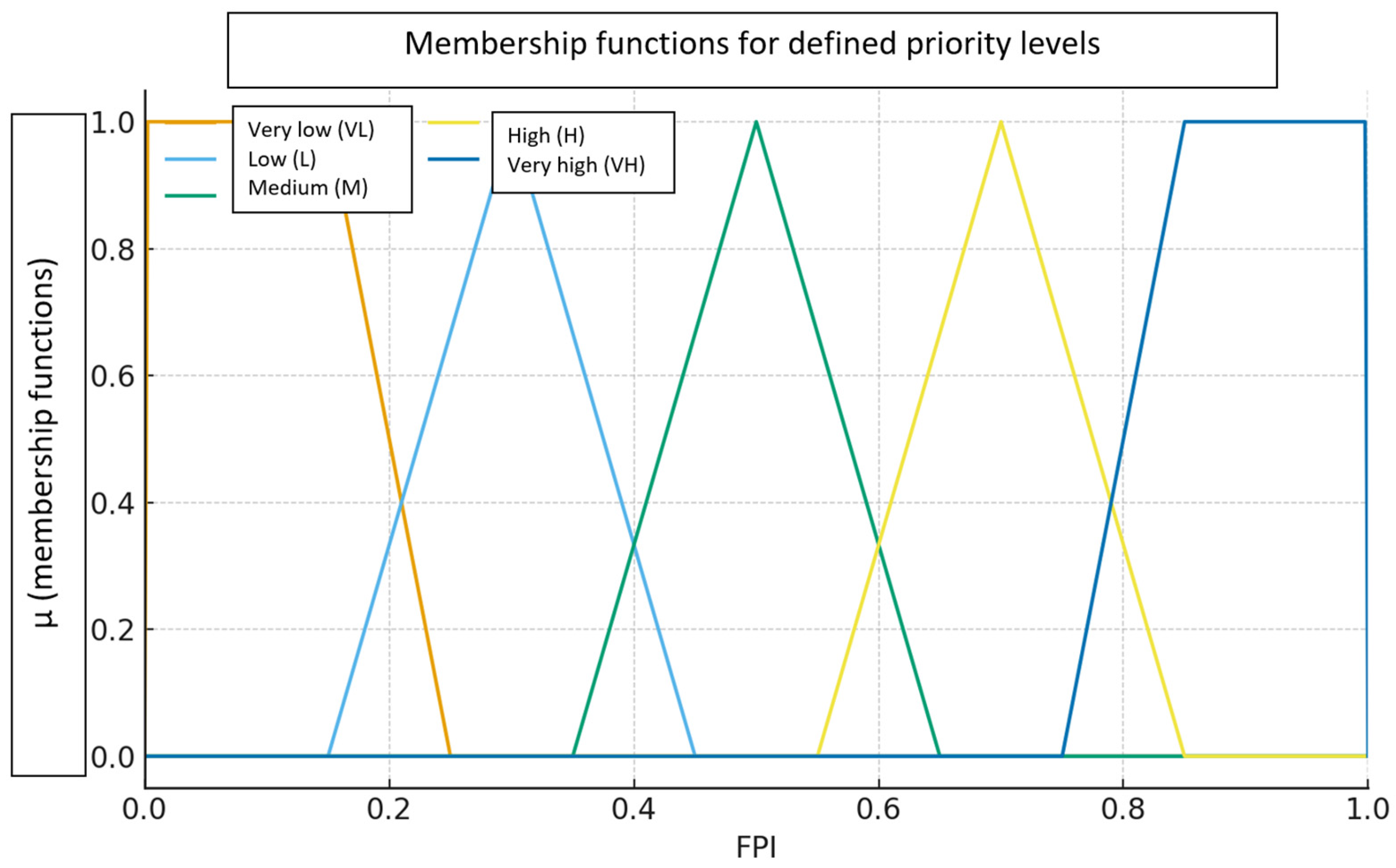 2.2.5. Stage 5. Aggregation of Results—Determination of the Fuzzy Priority Index (FPI)